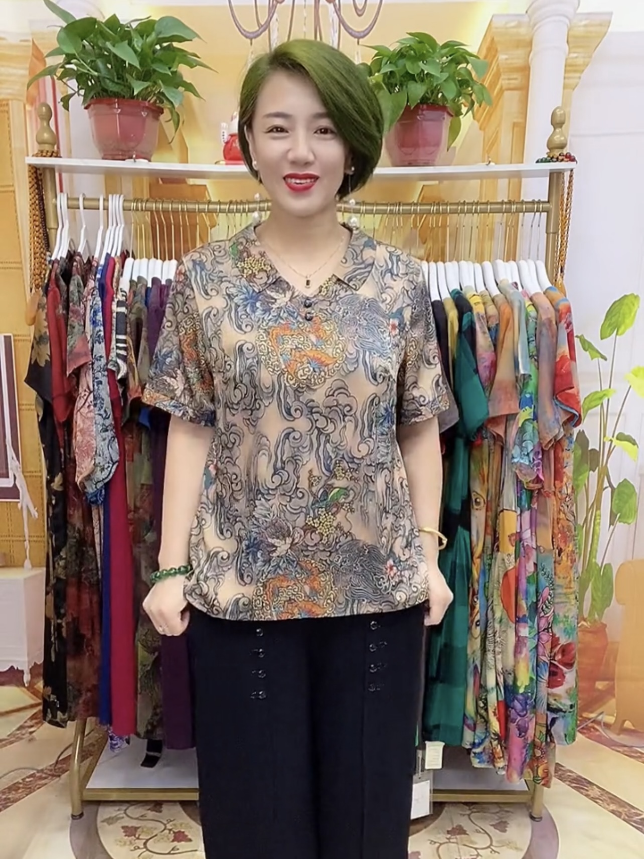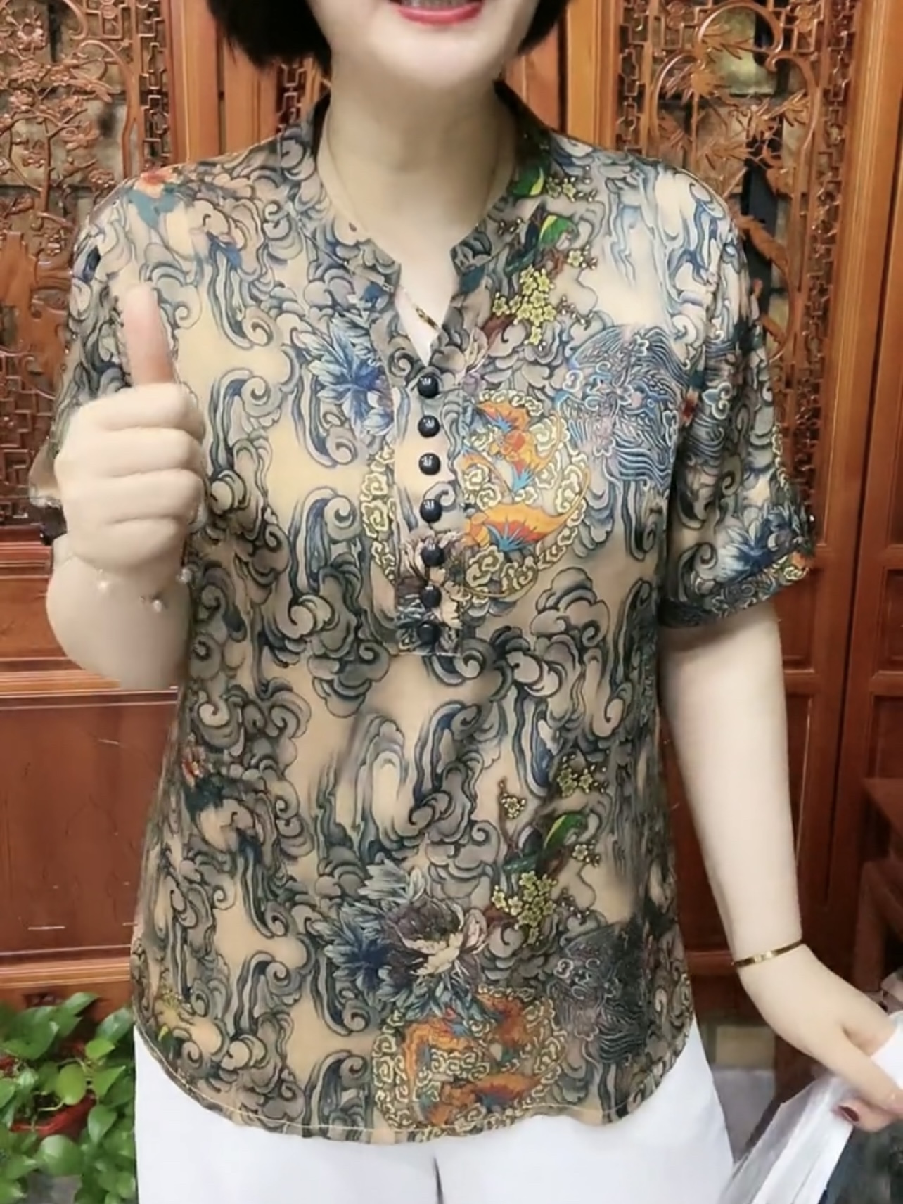 Middle-aged mother loaded with fat increase 2021 summer new fashion Xiangyun print loose thin temperament top
