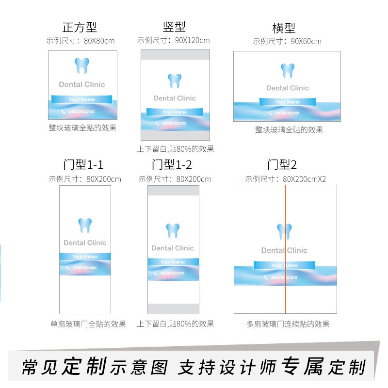 Fashion Dentistry Custom Teeth Oral Clinic Door Hall Glass Cling Light Opaque Sticker Dental Hospital
