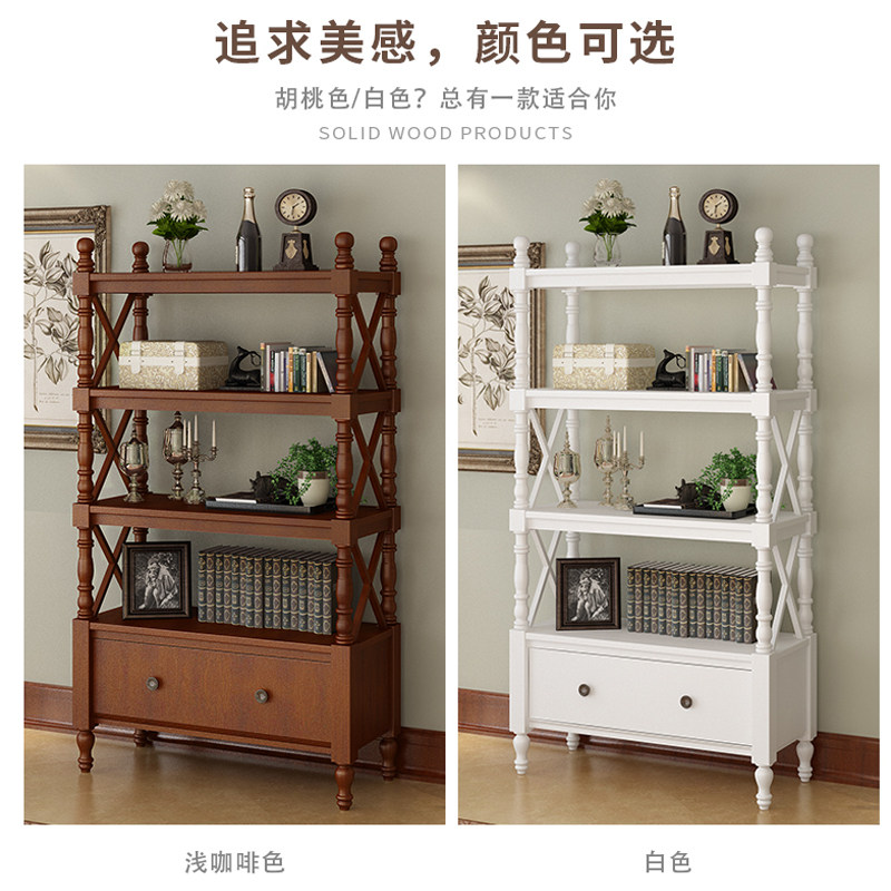American-style bookshelf floor-to-ceiling solid wood bookcase European-style living room shelf children's simple small bookcase multi-layer storage shelf