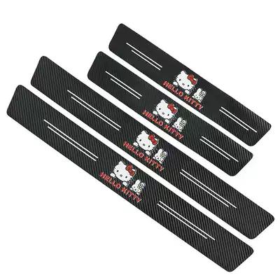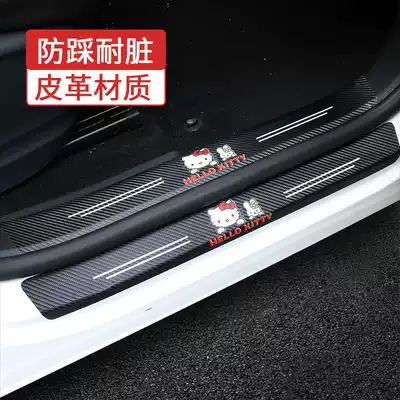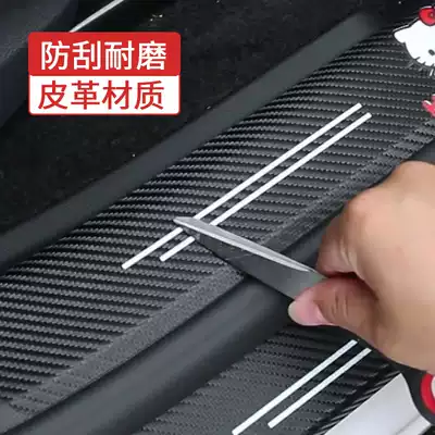 Car cartoon threshold sticker anti-stampede self-adhesive carbon fiber leather threshold strip welcome pedal protection strip universal