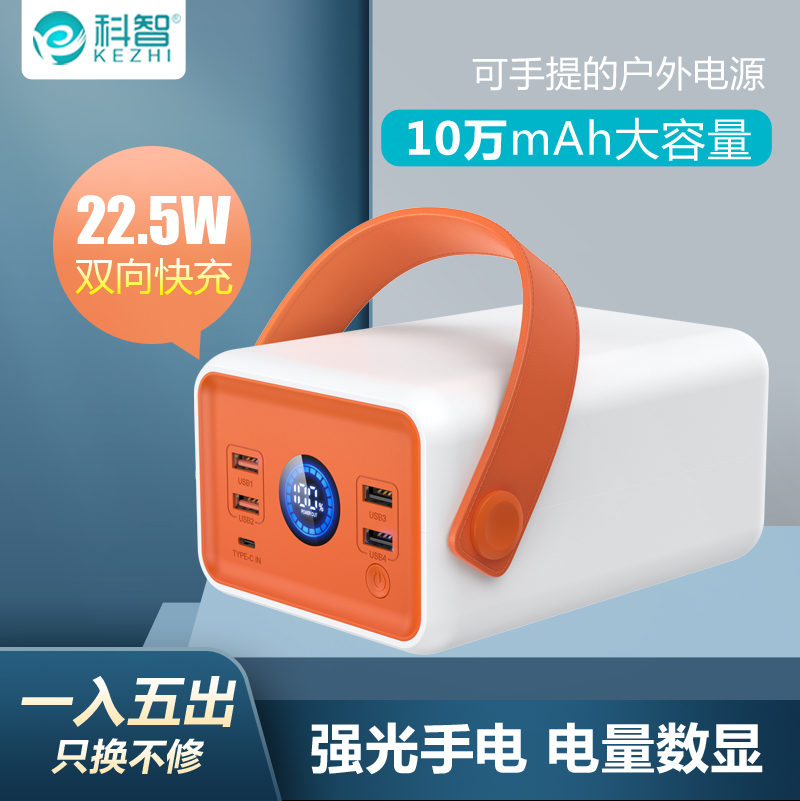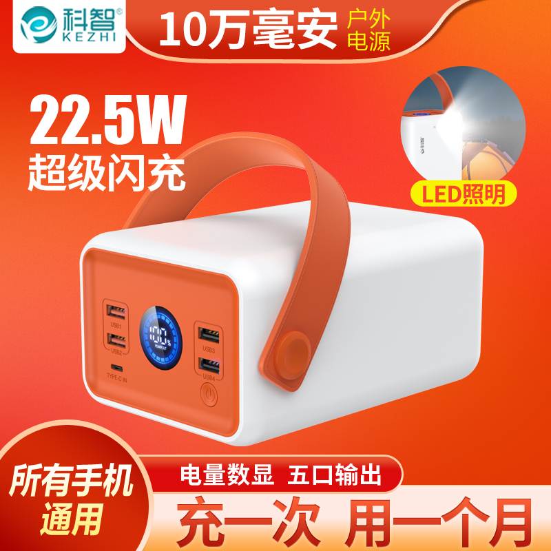 Kezhi 100000 mAh ultra-large capacity smart digital display charging treasure LED flashlight 22 5W super fast charging mobile phone tablet universal outdoor mobile power supply suitable for camping live broadcast wild fishing