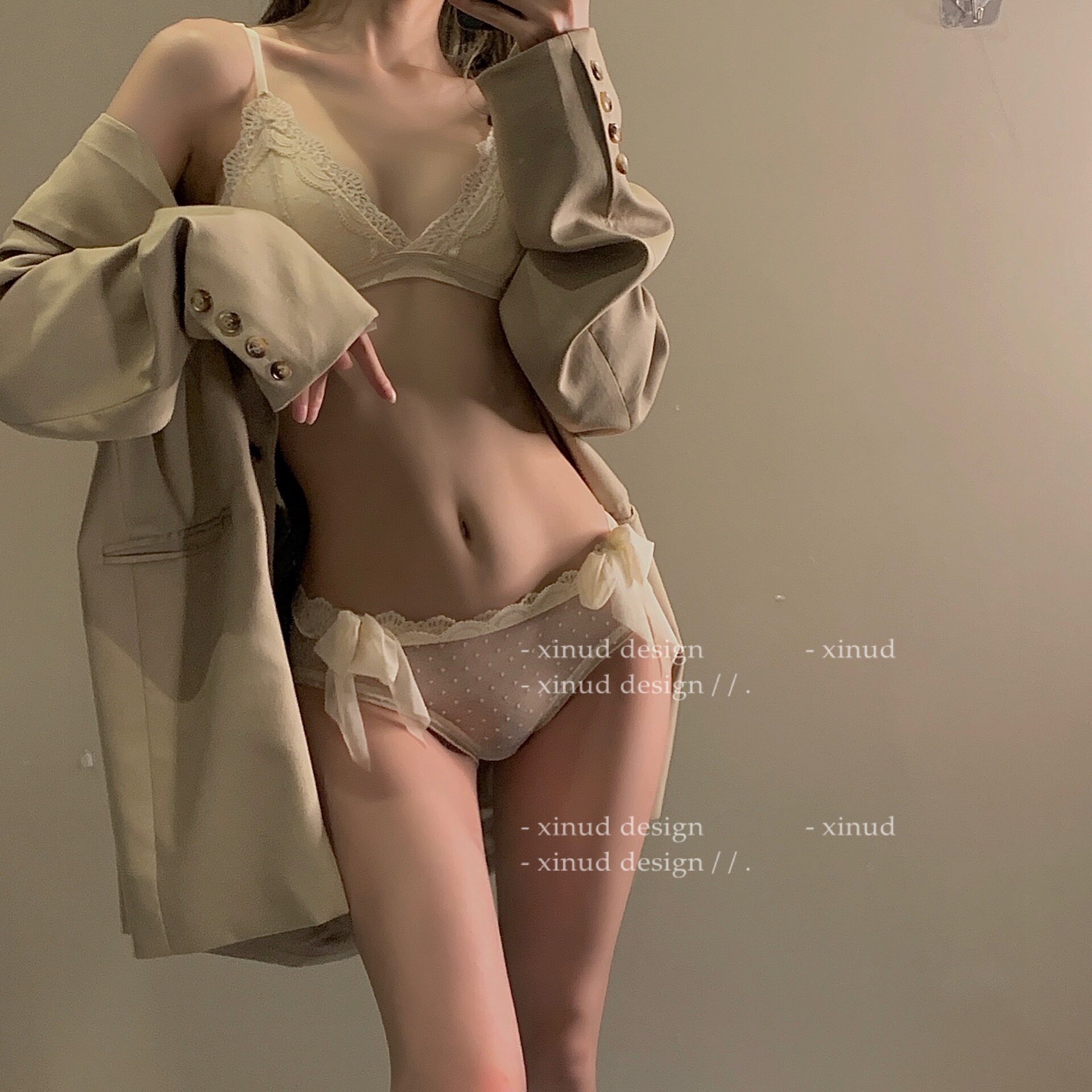 "LA" Fairy Set! Underwire-less lace polka dot summer lace lingerie thin cup French bra set