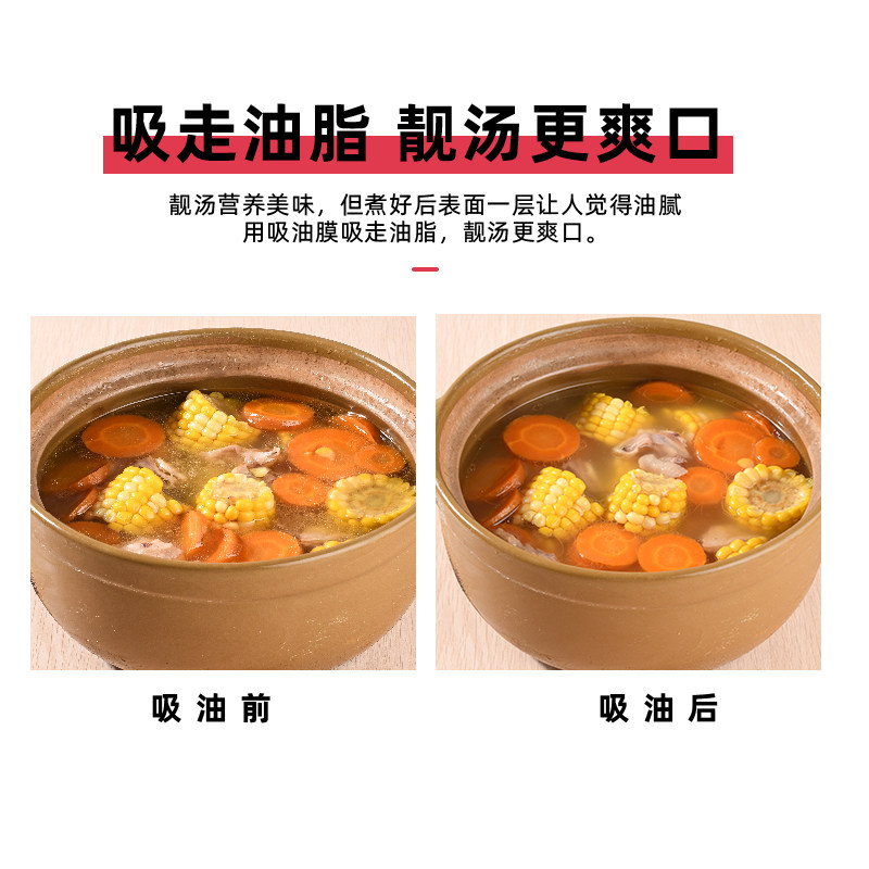Panda cousin cooking soup and drinking oil-absorbing paper kitchen edible soup frying oil filter film food food stew soup with oil removal