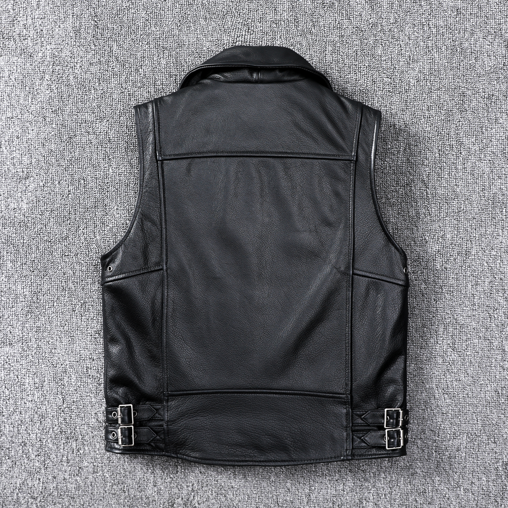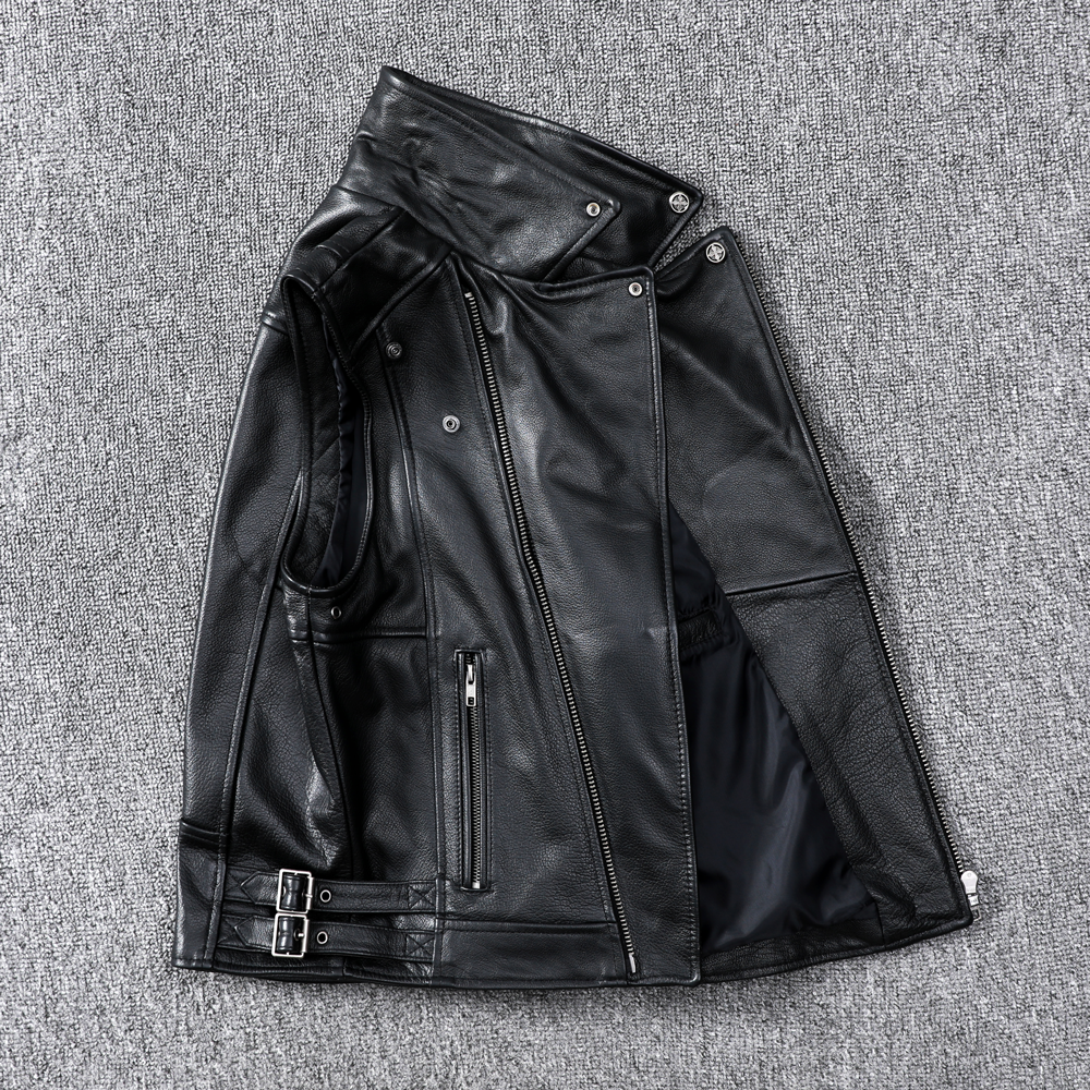 New Harley motorcycle first layer cowhide leather leather jacket men's short slim fit lapel sleeveless outer vest motorcycle suit