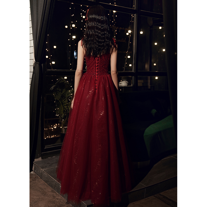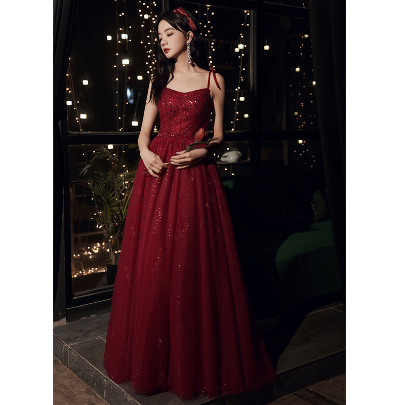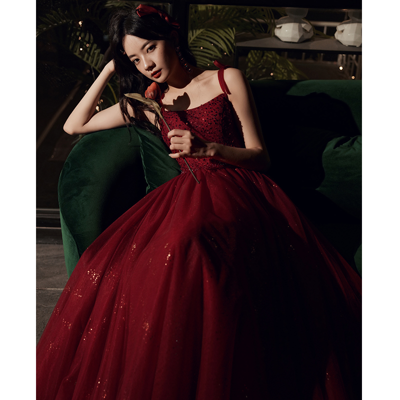 Red toast dress married day bride dress home dress wedding high-sense engagement dress at escape princess dress