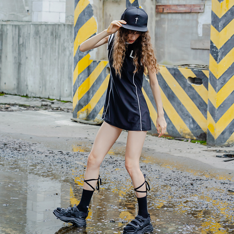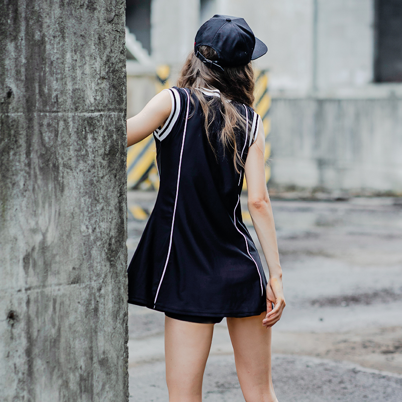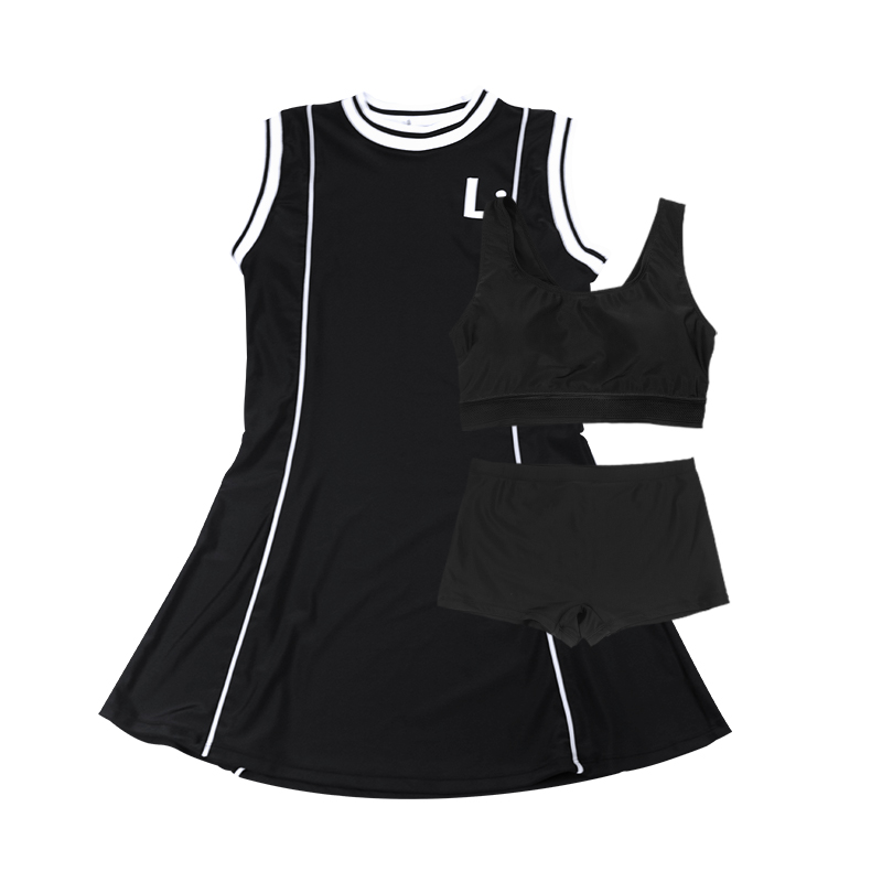 Li Xiaodining Leisure Sports Wind 2020 Black Swimsuit Women Boomer Cool three sets Belly Button Slim Conservative Two-piece Swimsuit