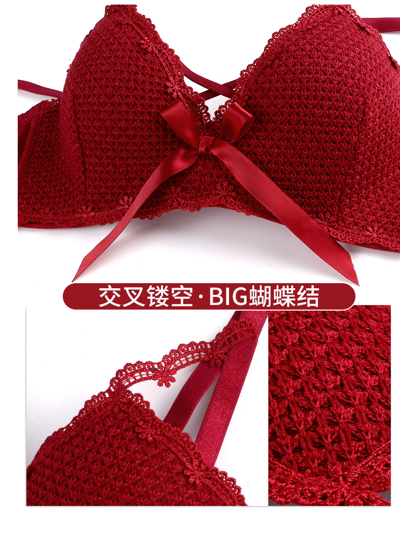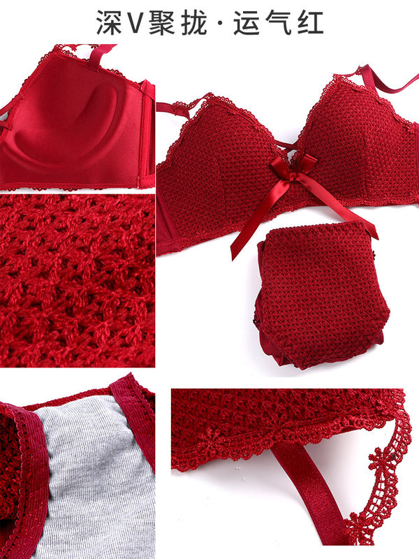The year of life red underwear set female small chest gathered without rims Flat chest beauty back bra thin section closed pair of breast bra