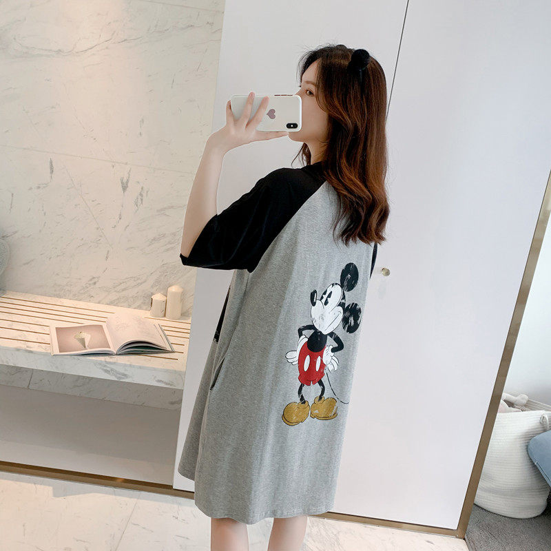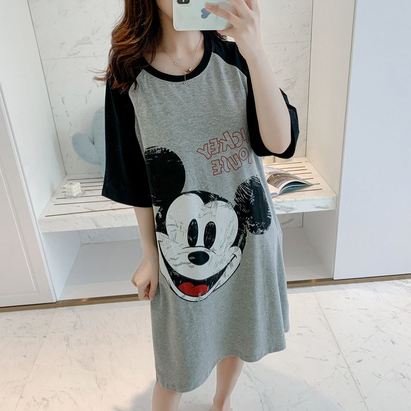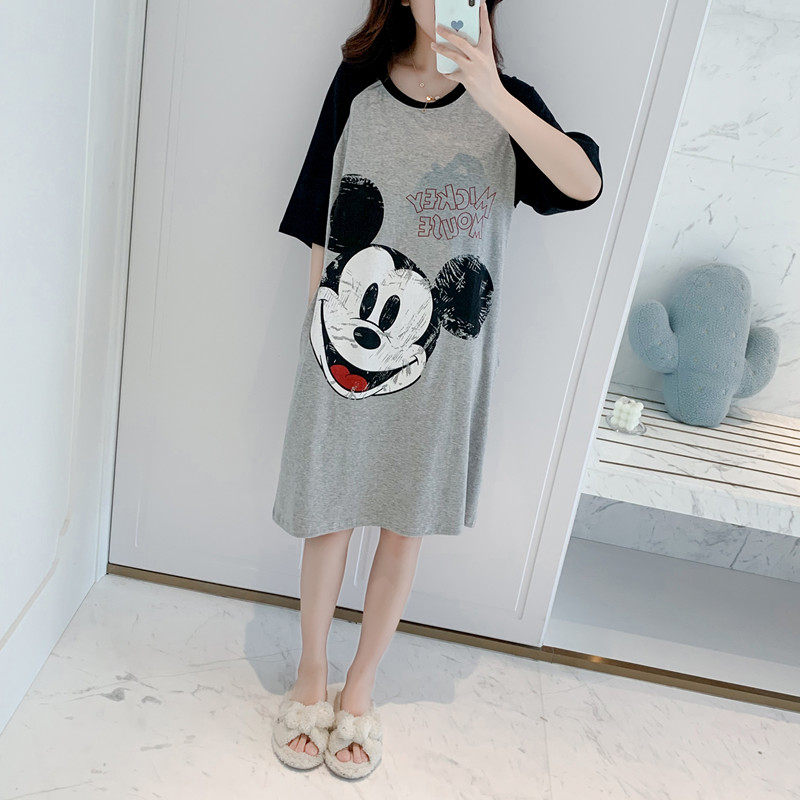 Short-sleeved nightdress with chest pad pure cotton pajamas female summer cute cartoon Mickey girl loose large size student home service