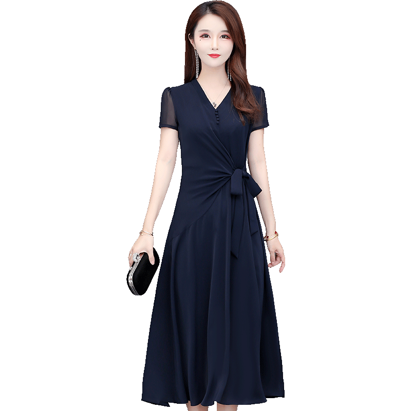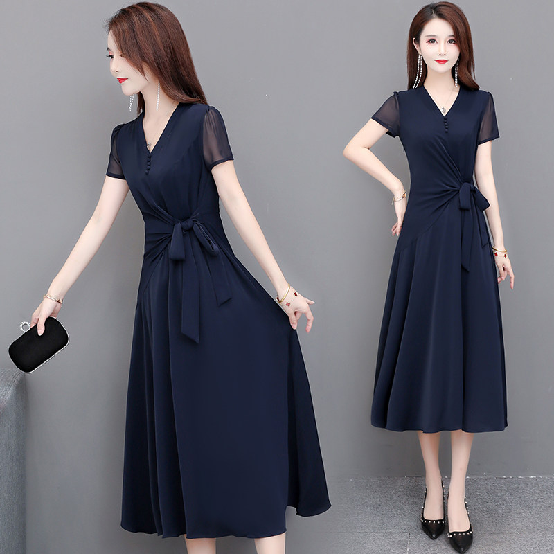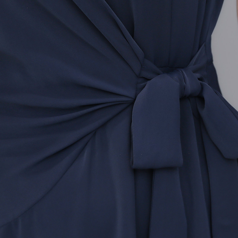 Spring and summer temperament V - tie dress in 2022 new closing wear fan goddess Fan Shui spin dress