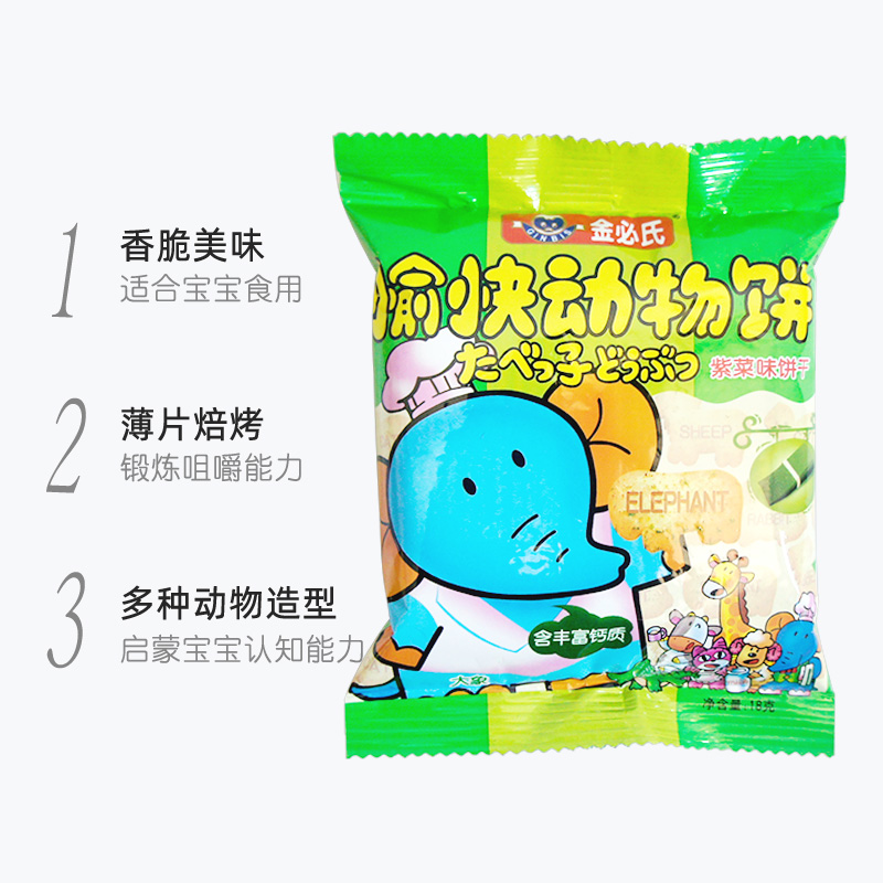 Jin Bes happy animal biscuits 30 bags of molar letters baby snack food children's biscuit snacks 18g
