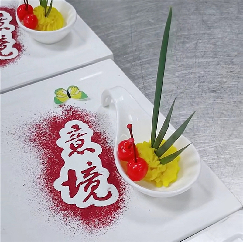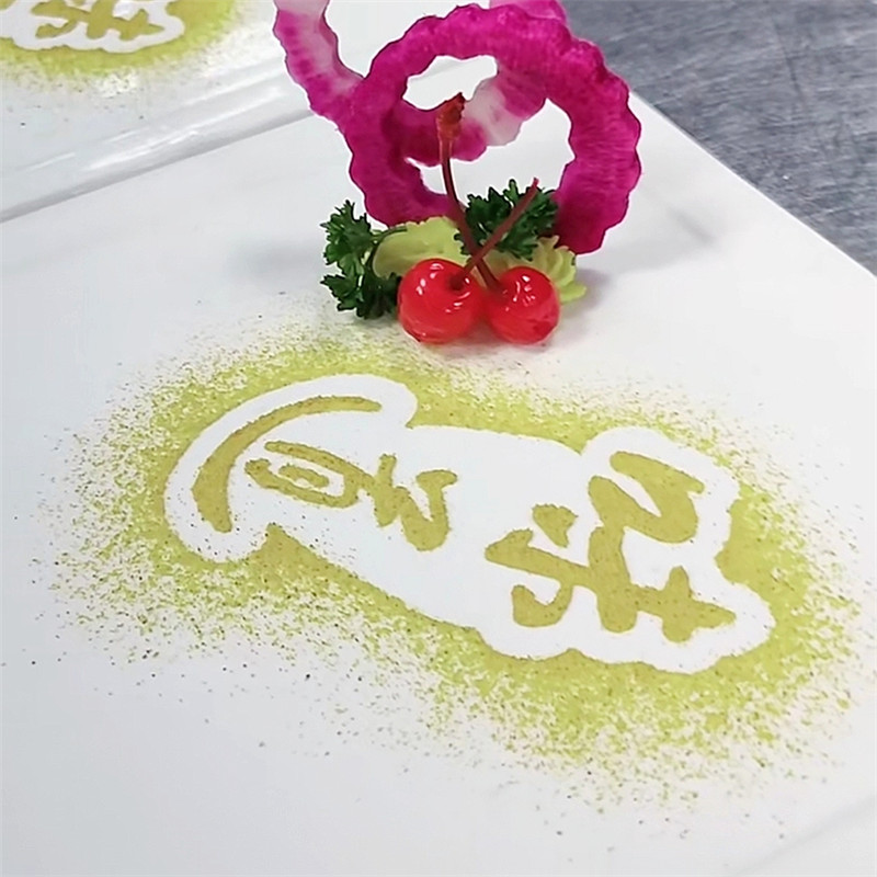 Disc Decorated with Fruit Vegetable Powder Edible Vegetable Tasking Tray Decoration Creative Kitchen Mood Cold Vegetable Loading Dish of Pink Alphabet