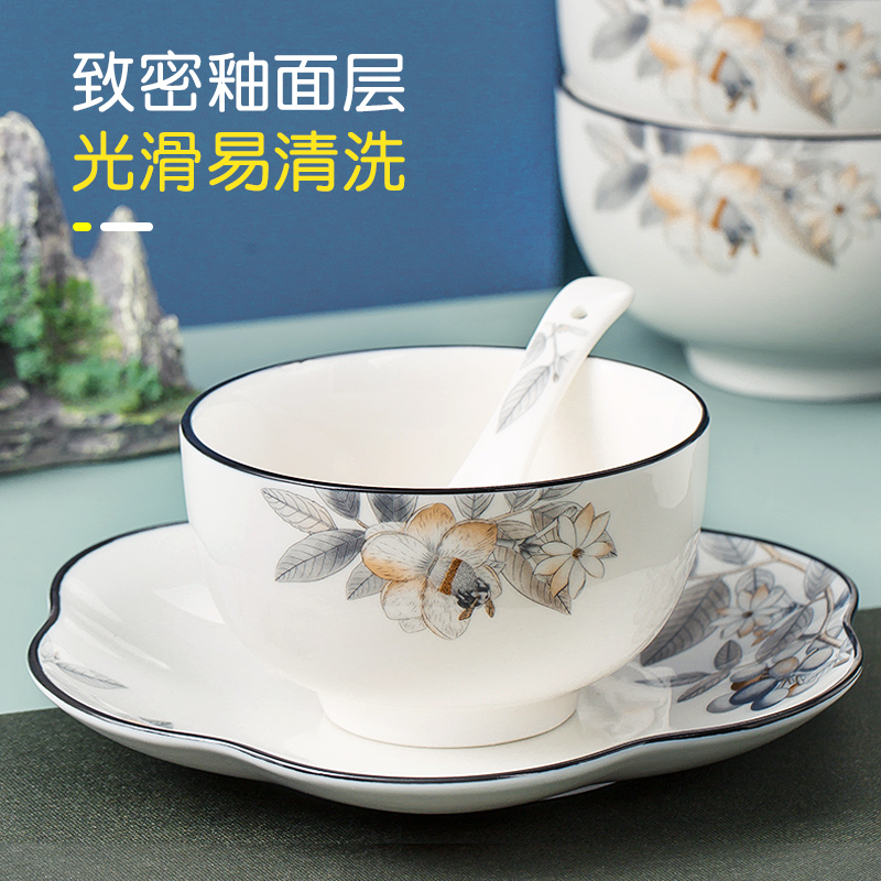 Ceramic glazed tableware Home New Chinese Thickened Meals Bowl Healthy Microwave Dishes Single single