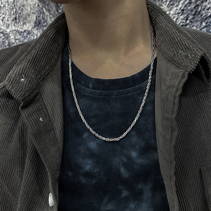 925 sterling silver peace pattern personality Thai silver necklace trendy men's fine retro clavicle chain female couple niche silver jewelry