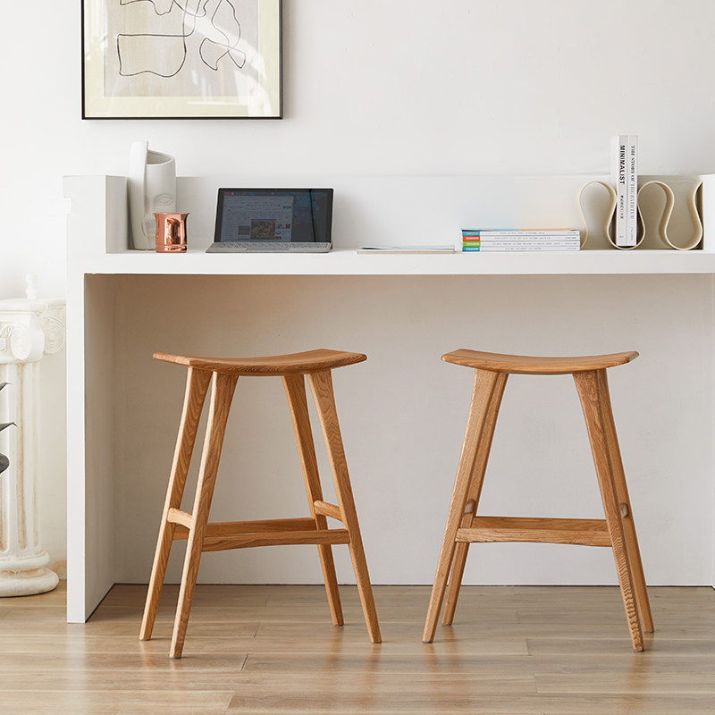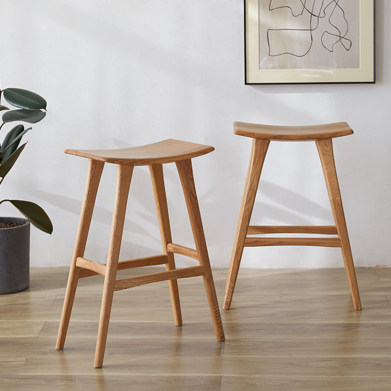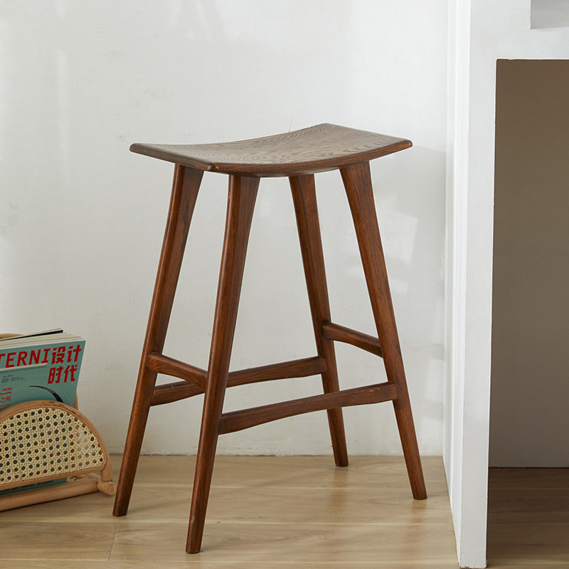 Saddle stool Nordic solid wood high stool home 55cm wooden bar stool creative black walnut bar bench chair