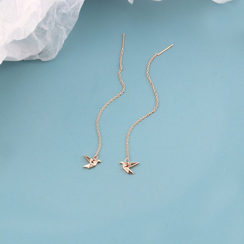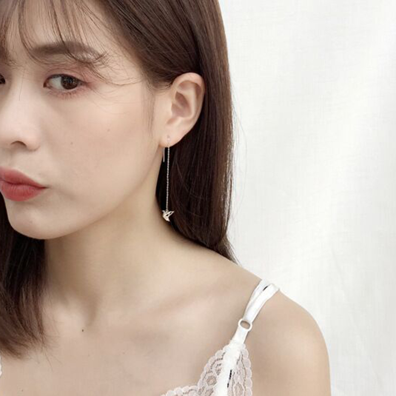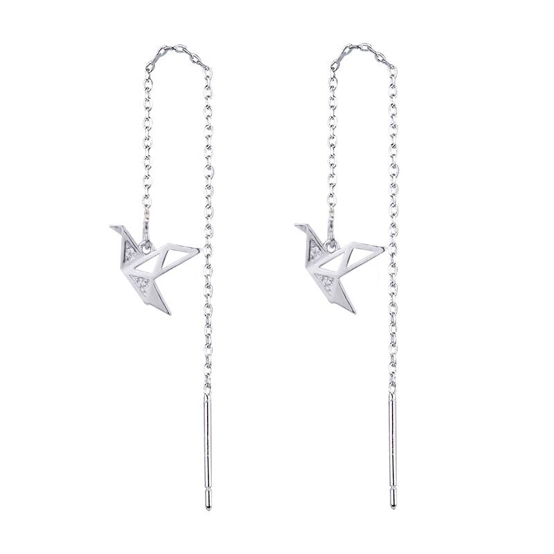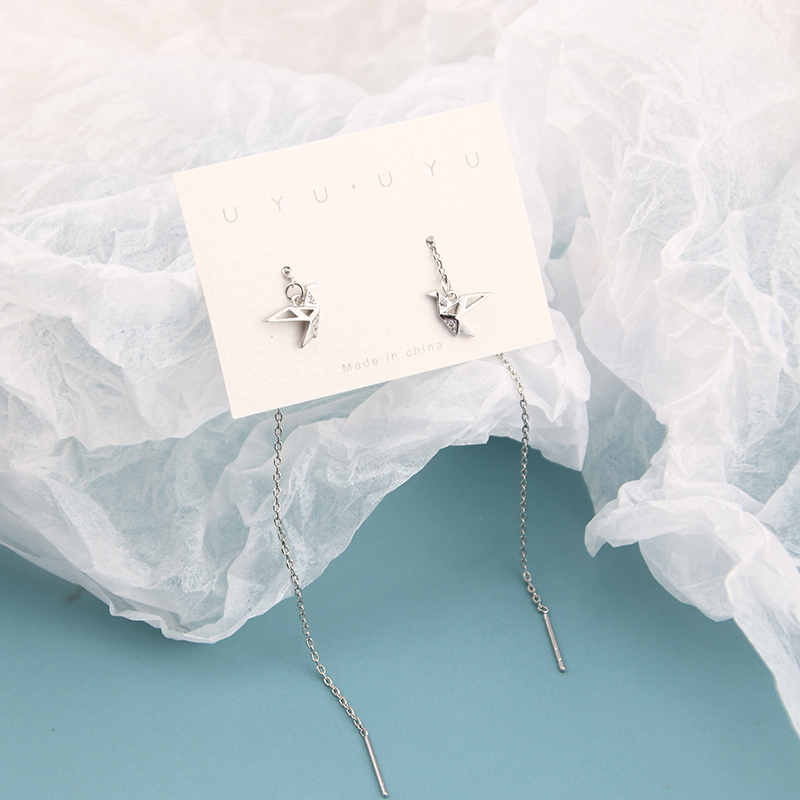 s925 silver flash diamond thousand paper crane ear line women's trendy simple temperament super fairy forest long earrings show face thin earrings