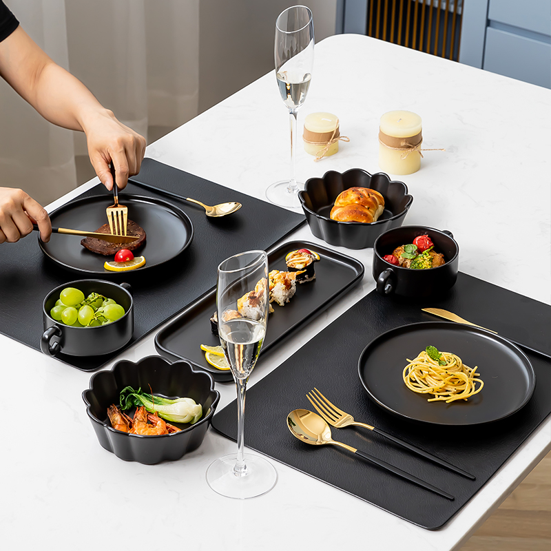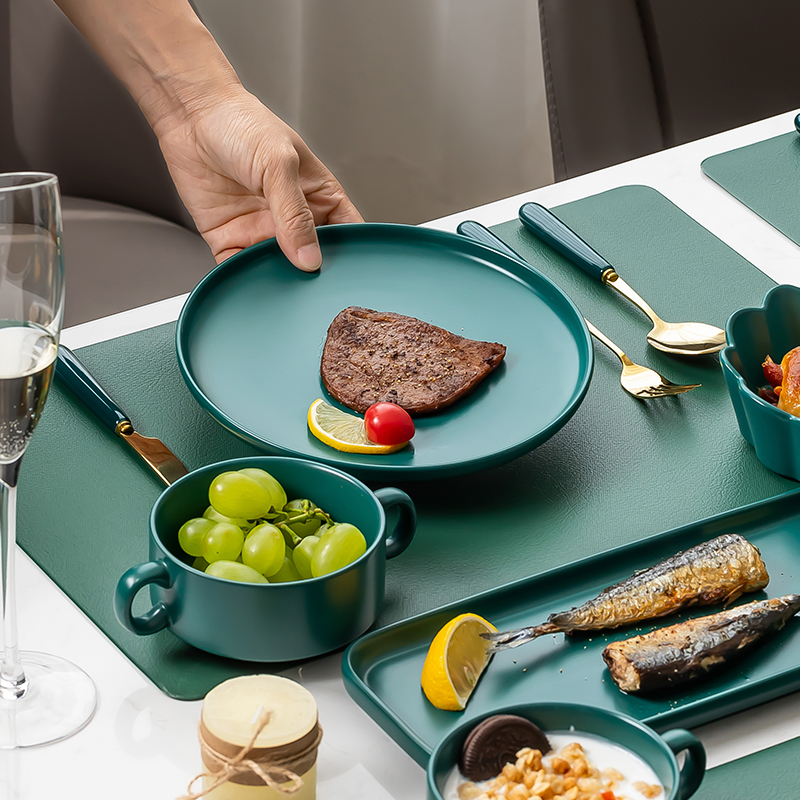 Disc one person food(dark green) Square plate One person food(dark green) Disc one person food(fresh blue) Disc one person food (Premium black) Square plate One person food(Premium Black) Disc Two people food (ink