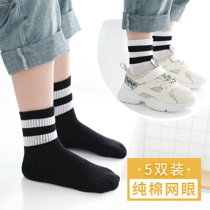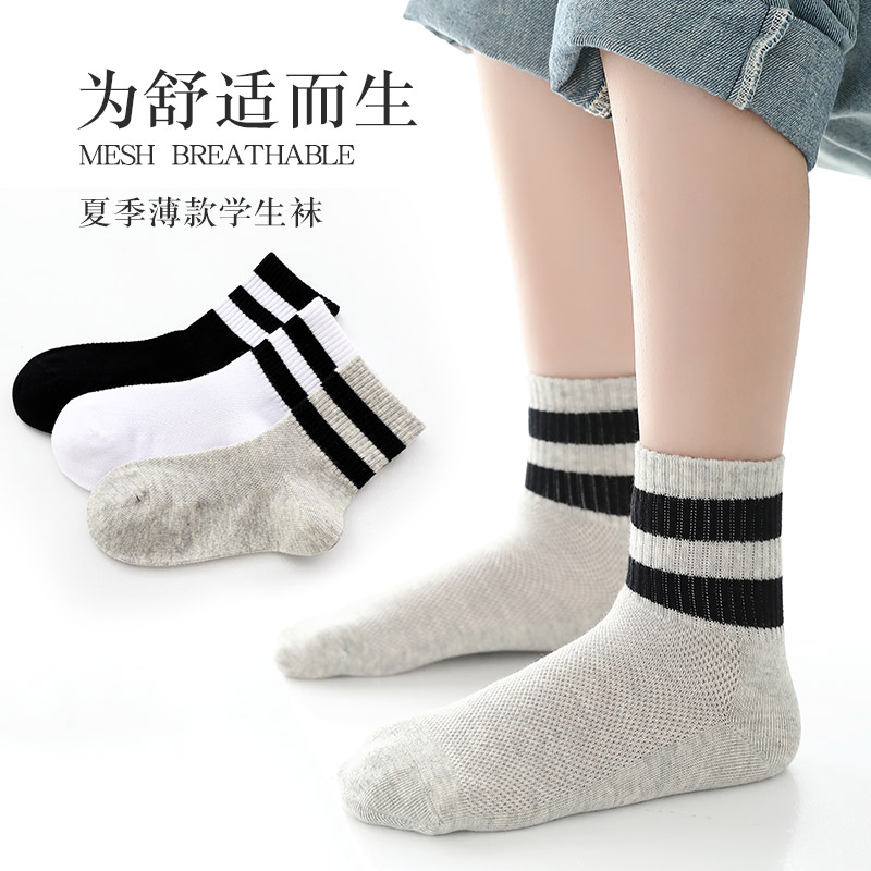 Children's socks summer thin cotton primary school students white socks boys socks girls summer white breathable mid-tube socks