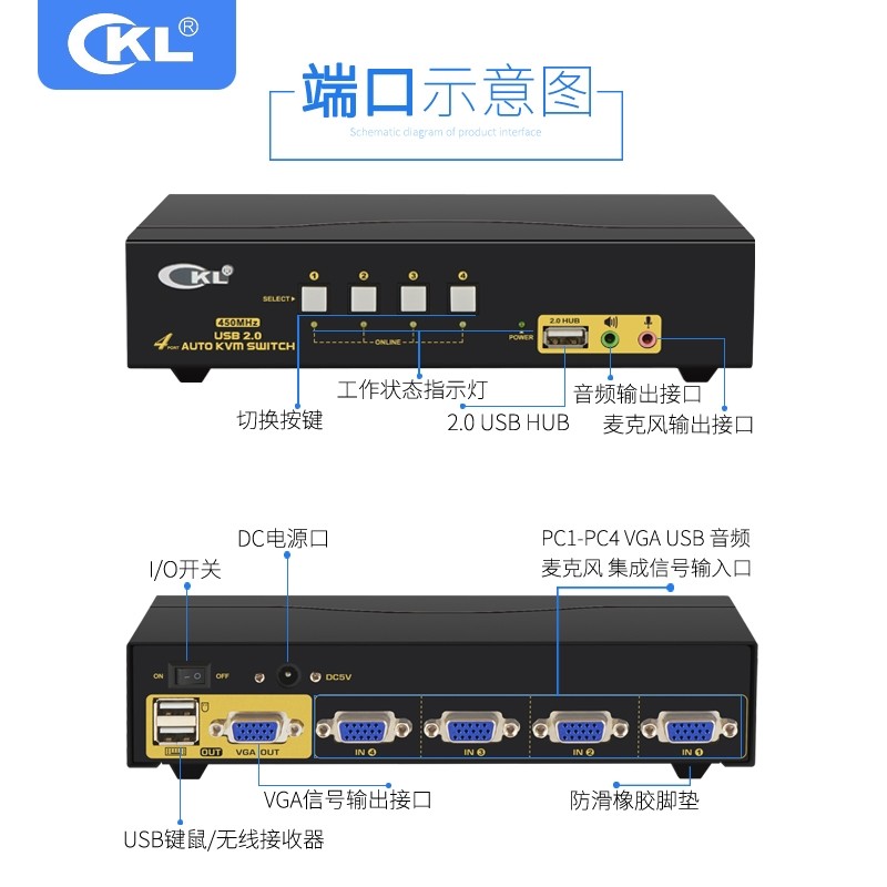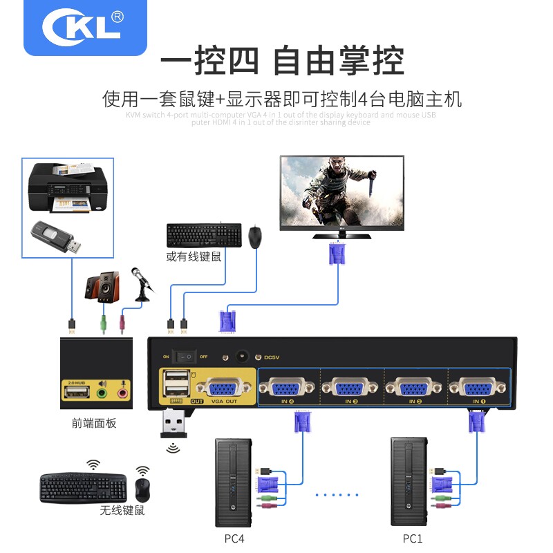 KVM switcher 4-port USB automatic 4-in-1 out-of-view audio switcher Hub printer share CKL-84UA-Taobao