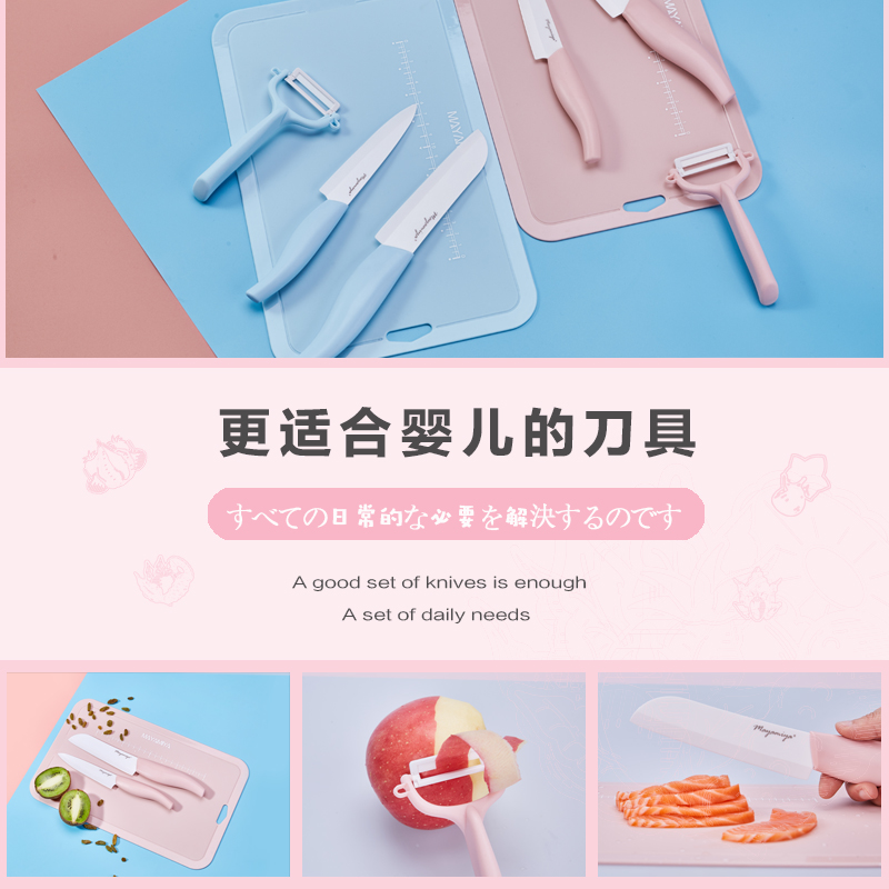 Japan mayyamiya baby complementary food cutter tool suit antibacterial children baby water fruit knife cutting board ceramic knife