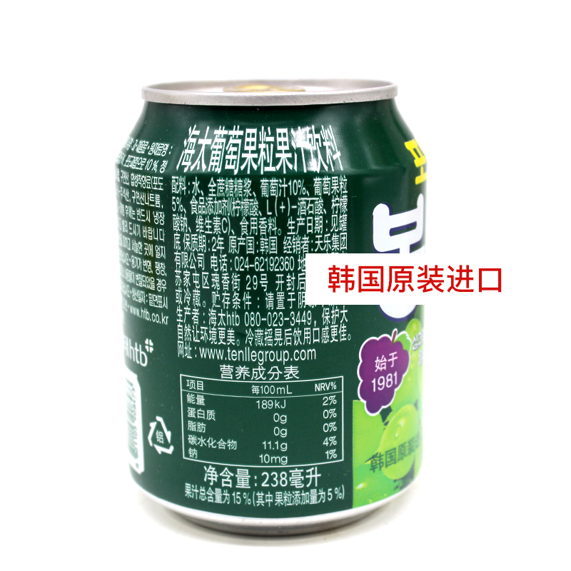 Korea Imported Beverage Net Red Haitai Pulp Juice 10 Cans 6 Kinds Mixed Grape Strawberry Aloe Vera Peach Apple
