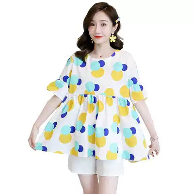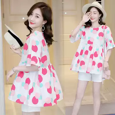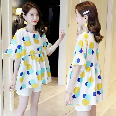 Pregnant women's summer suit net red casual doll shirt top belly shorts pregnant women's suit summer out fashion