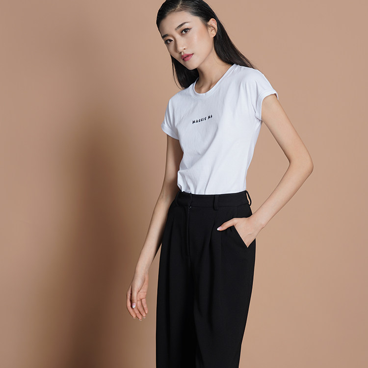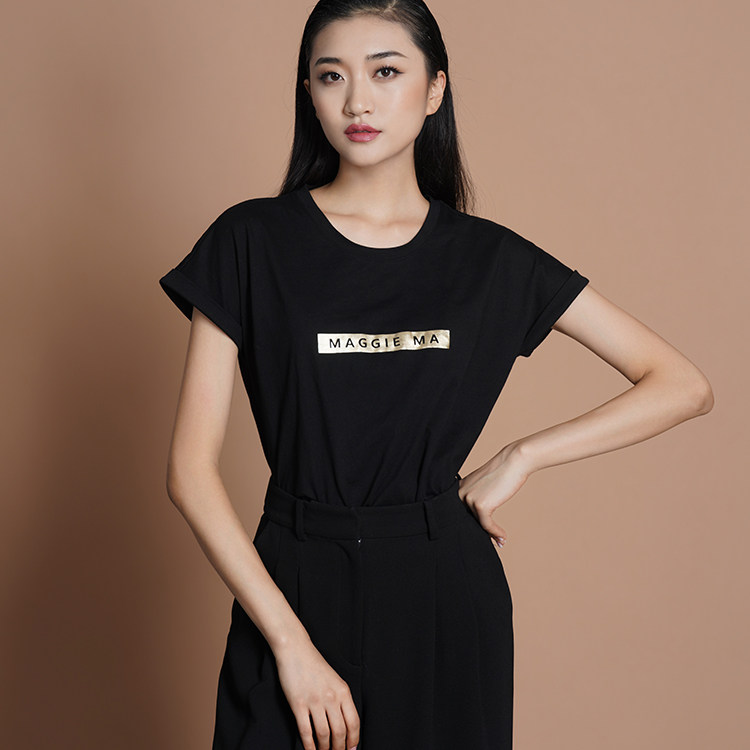 MAGGIE MA Ma Jing limited black bronzing white embroidery logo cotton women's new T-shirt 500S 501S
