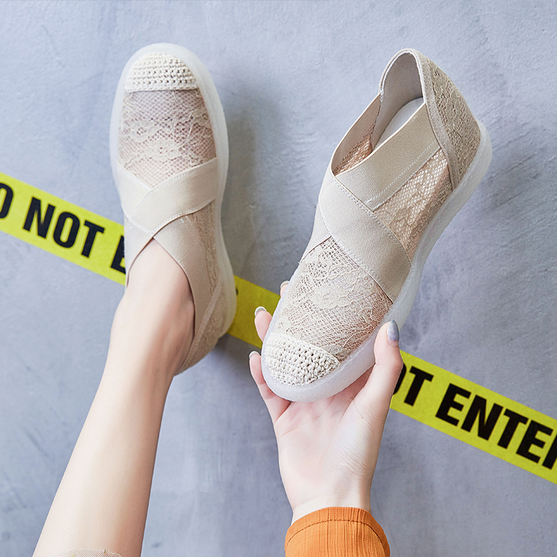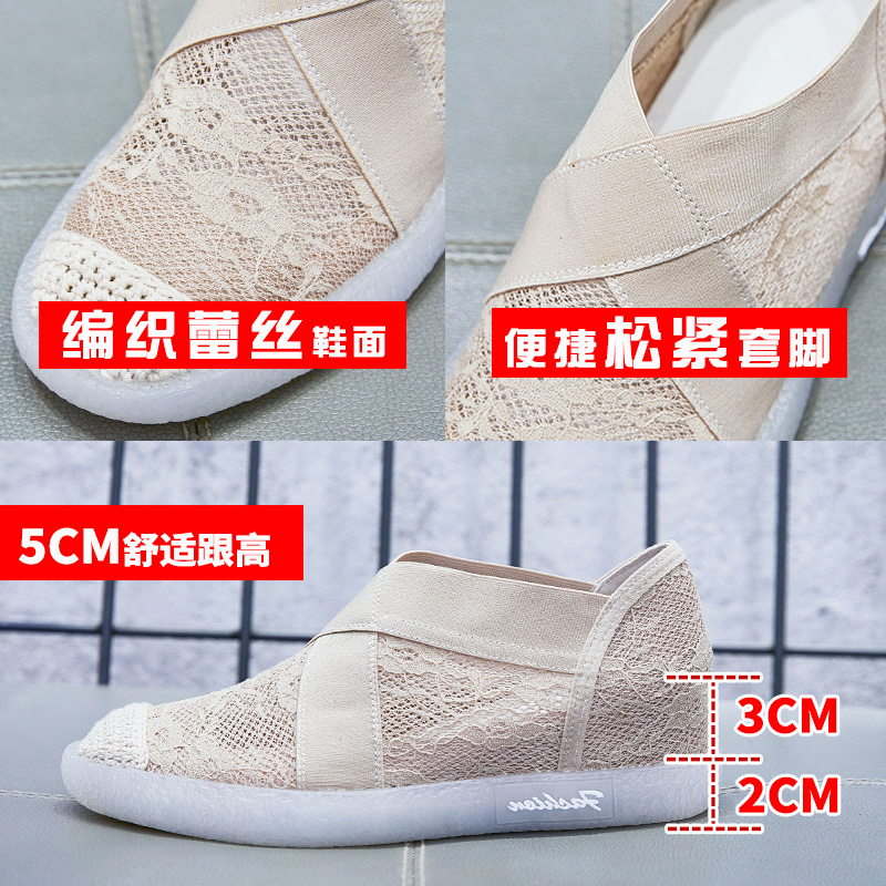 Inner height-increasing mesh shoes women's 2021 new all-match one-leg lazy loafer shoes summer breathable mesh fisherman shoes
