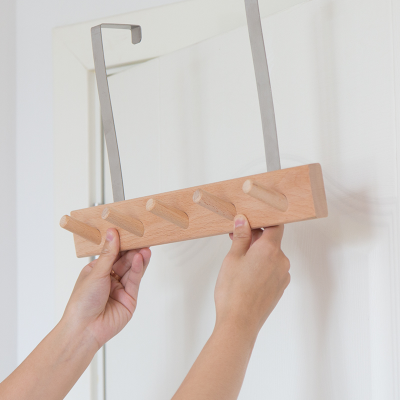 Door rear hanger free from punching door hanging clothes hanger bedroom solid wood wall-mounted door back style clothes hat hanging clothes hook row