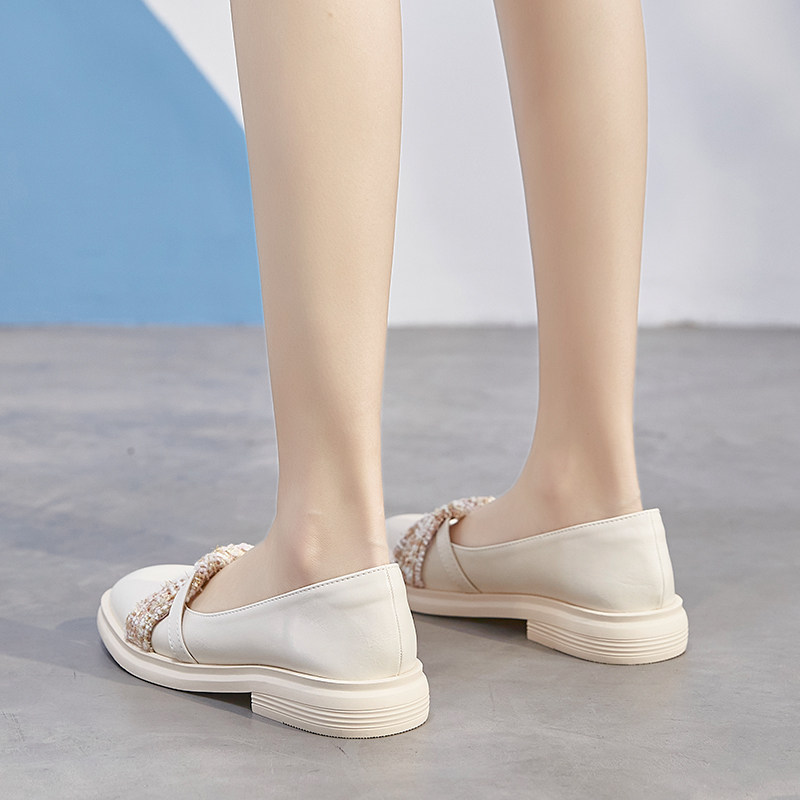 White small leather shoes 2022 Spring and Autumn New British style fairy gentle shoes Joker shallow flat sole shoes women Summer