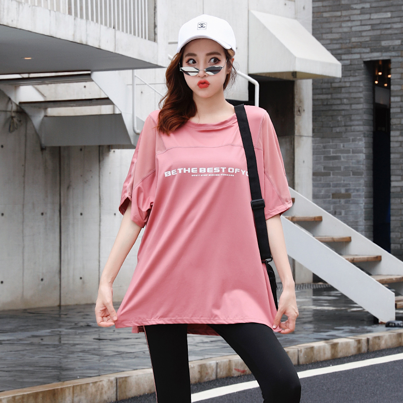 Yoga clothes women's summer net yarn slim fit large size Fat Mm Loose Running Speed Jersey Sports Fitness Suit Women Summer