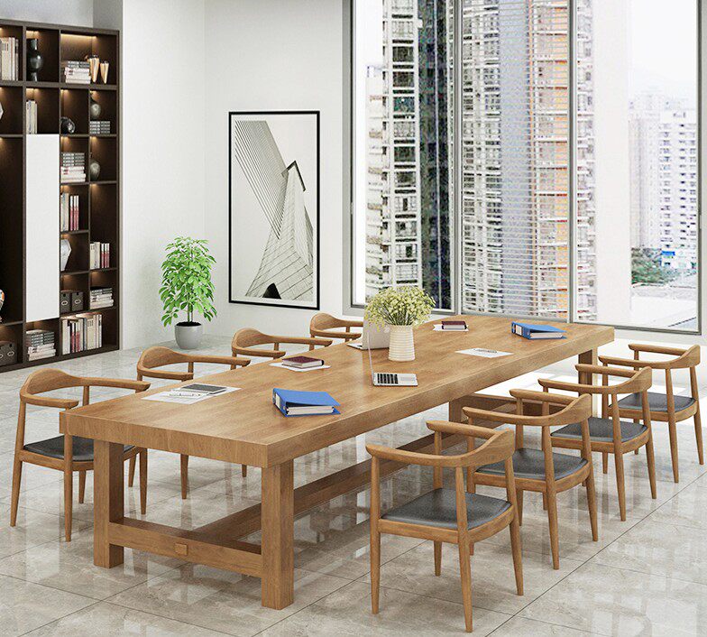 Large conference table and chair combination Long table Solid wood tea table desk Computer desk Industrial style negotiation training table