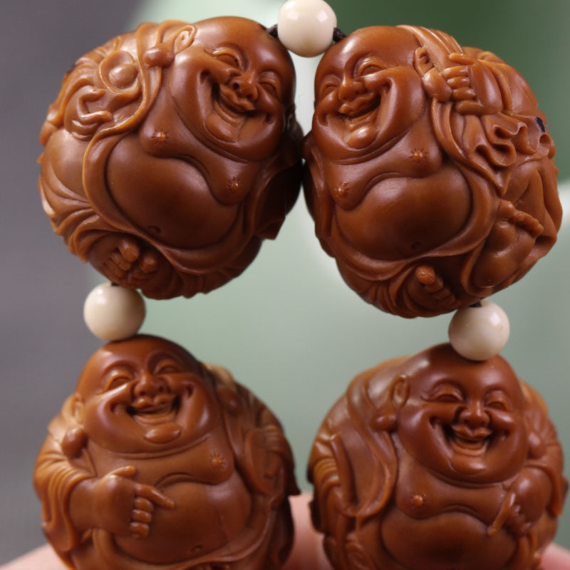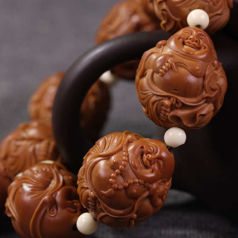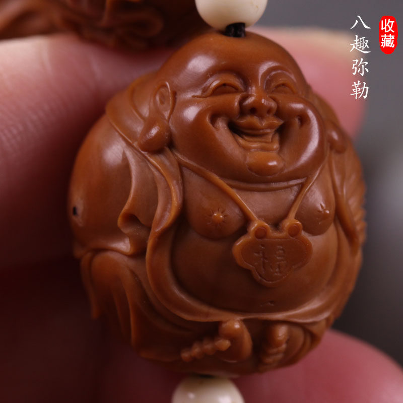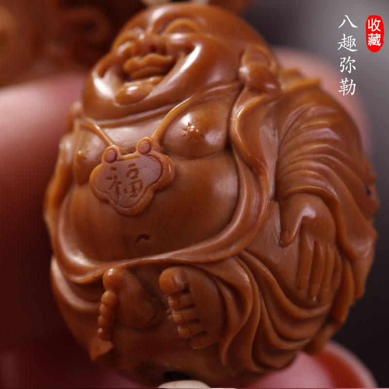 Zhoushan Su Gong famous master hand-carved eight fun Maitreya Buddha 2 3 short round full olive core bracelet