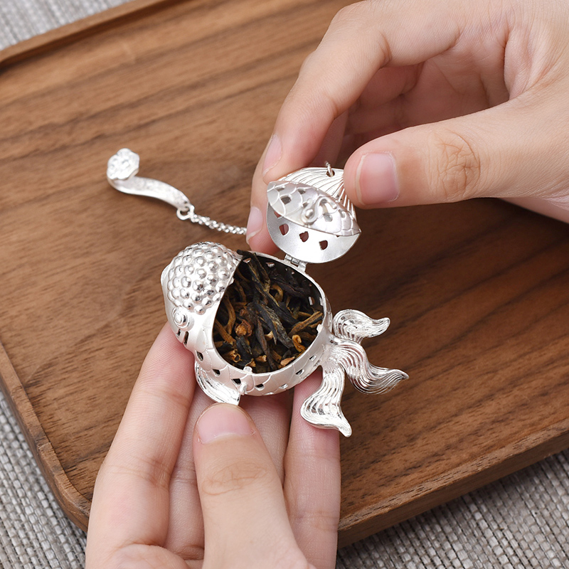 Silver Age Linglong Goldfish Silver Tea Brew sterling silver 999 Seiko specialty tea table ornament tea filter tea leak
