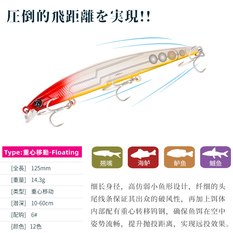 Catch House DW72 shallow super remote pitch Mino 125mm 14 3g floating waterway bait with sea perch 125F