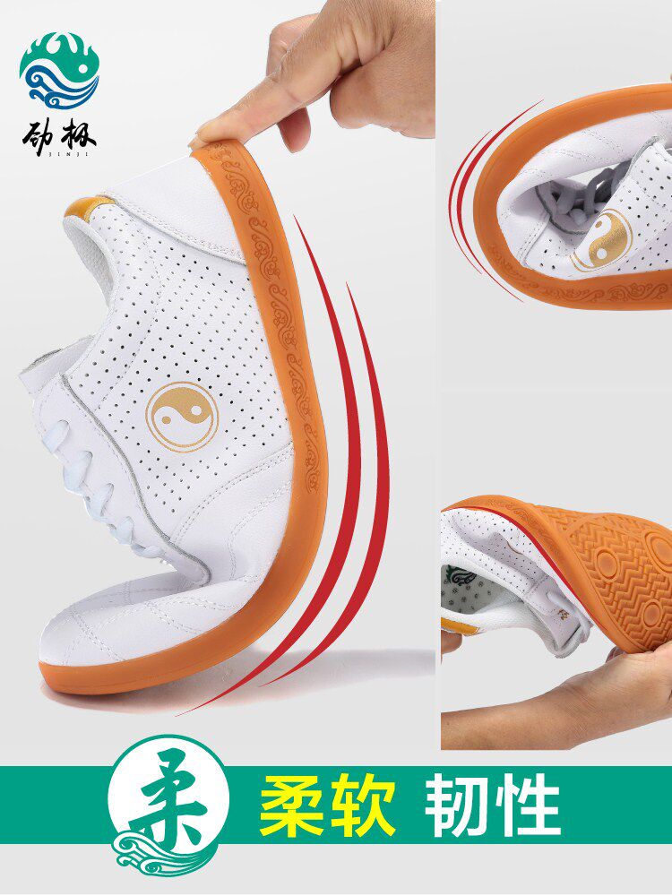 Stiff Extreme Tai Chi Shoes Flagship Store Women's Gluten Bottom Genuine Leather Martial Arts Shoes Men's Fall Breathable Taijiquan Kungfu Shoes Black