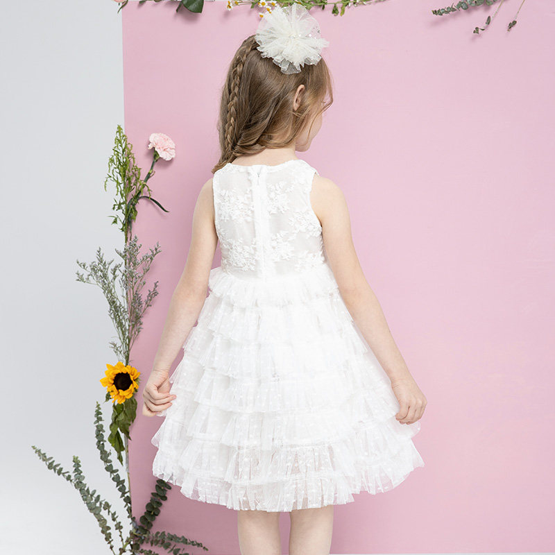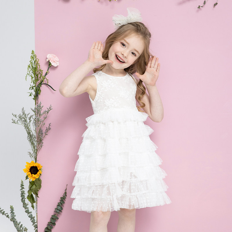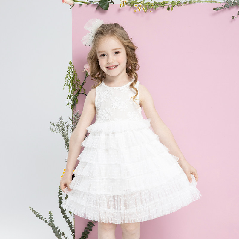 Princess dress girl's summer children's fluffy online dress rehearsal for little girl's summer cake skirt white dress