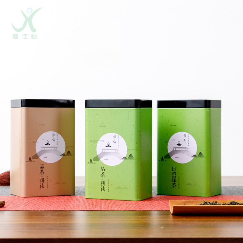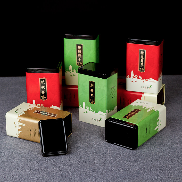 New tea tin tin can square universal metal sealed empty can red and green tea tin box tinplate half a catty tin box