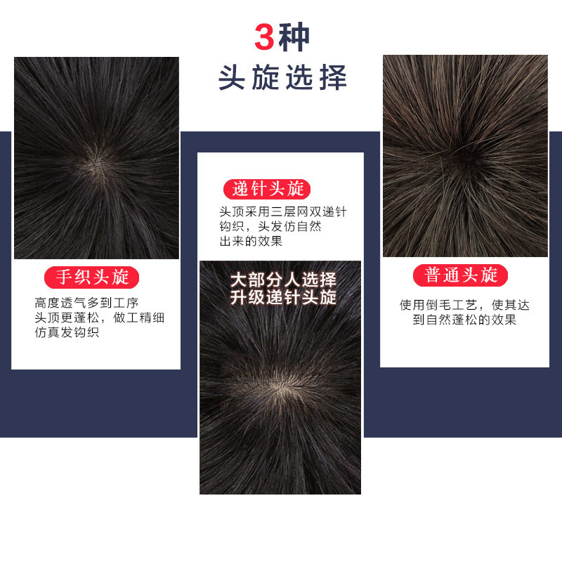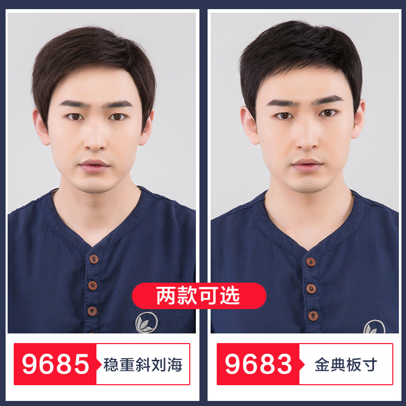 Wig Men Short Hair Real Hair Middle Aged Full Headgear Live-action Hair Korean version handsome to send Daddy wig headgear