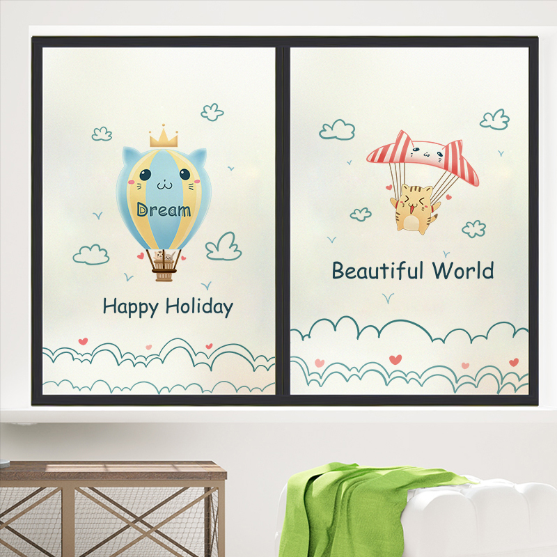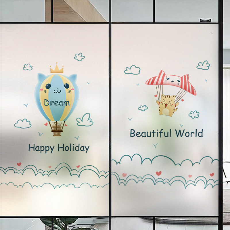 Cartoon glass door sticker anti-peep living room powder room shading frosted light-transmitting opaque window decals window stickers