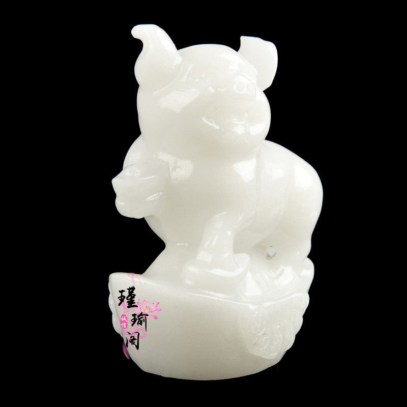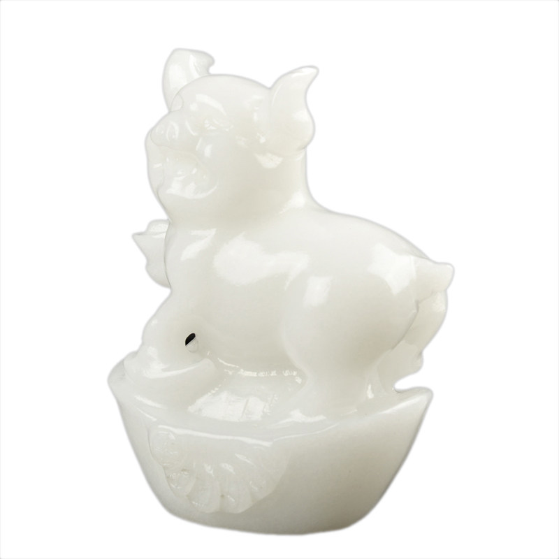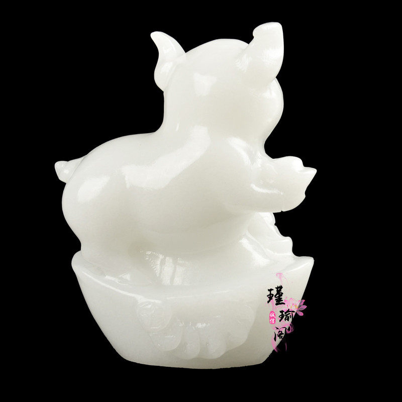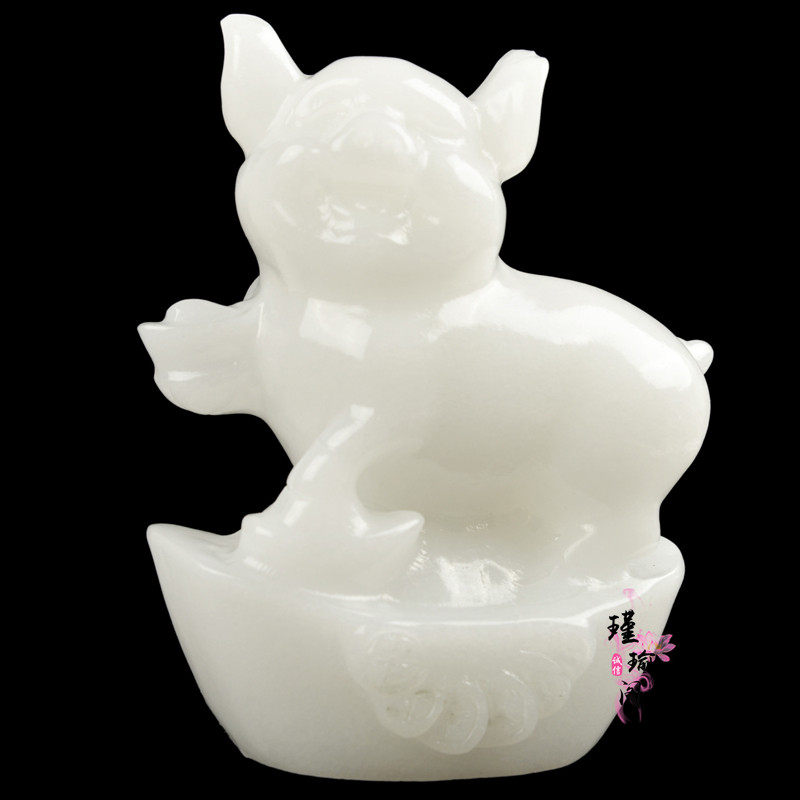 Natural Afghanistan White Jade Zodiac Zodiac Pig Swing Piece Home Living Room Office Yuanbao Pig Family Residence Decoration-Taobao