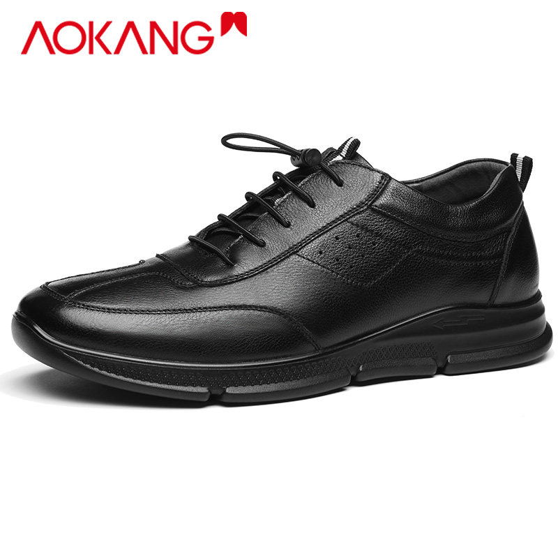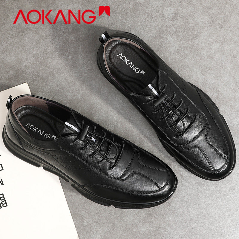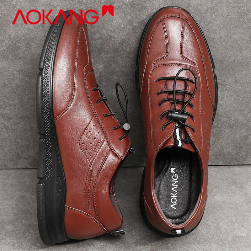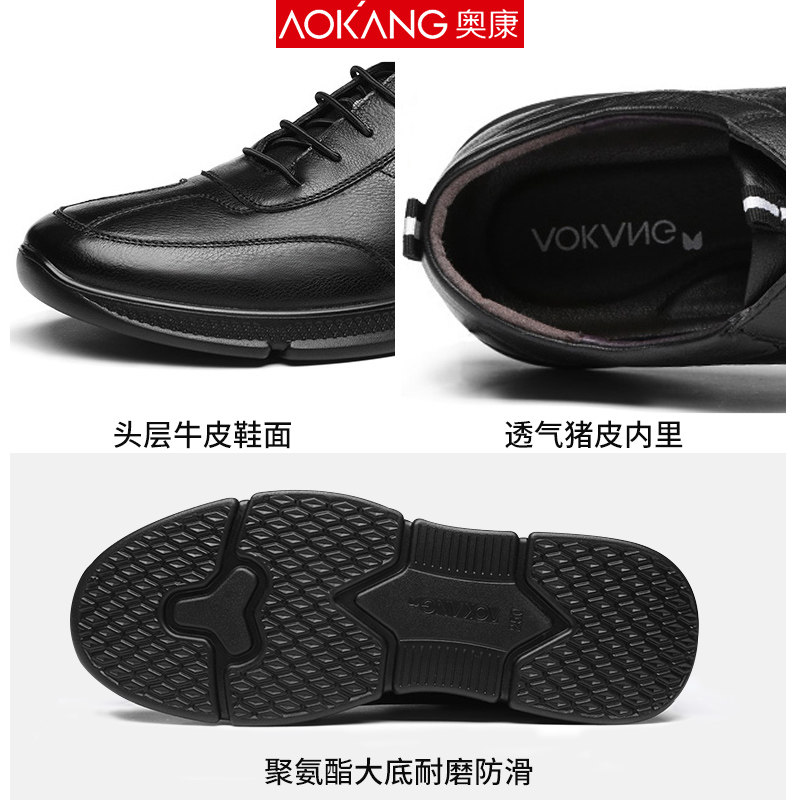 Okong men's shoes spring comfortable leather shoes men soft soles anti-skid sports shoes thick soles casual shoes men's single shoes