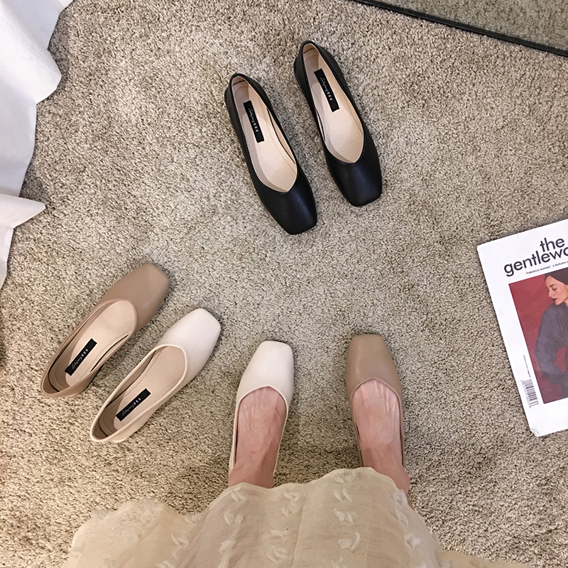 Thick heel shoes women's 2022 autumn new black all-match professional shoes soft leather low-heeled work small leather shoes spring and autumn