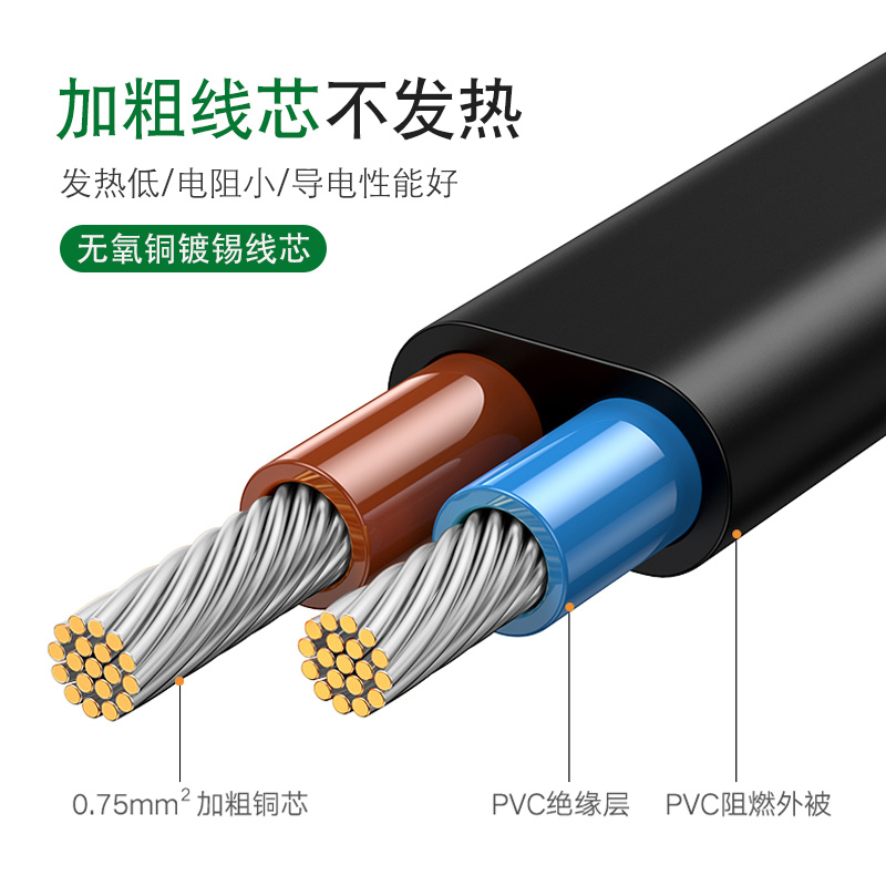 GB two flat bare tail 2×0 5 square black (3C certification) national standard two flat naked tail 2×0 5 square white (3C certification) national standard two flat bare tail 2×0 75 square