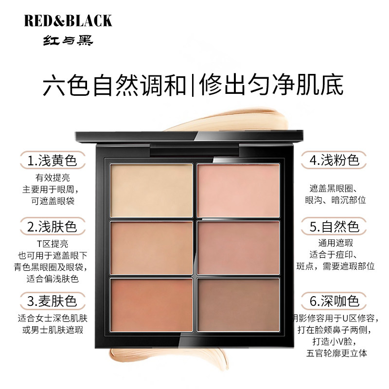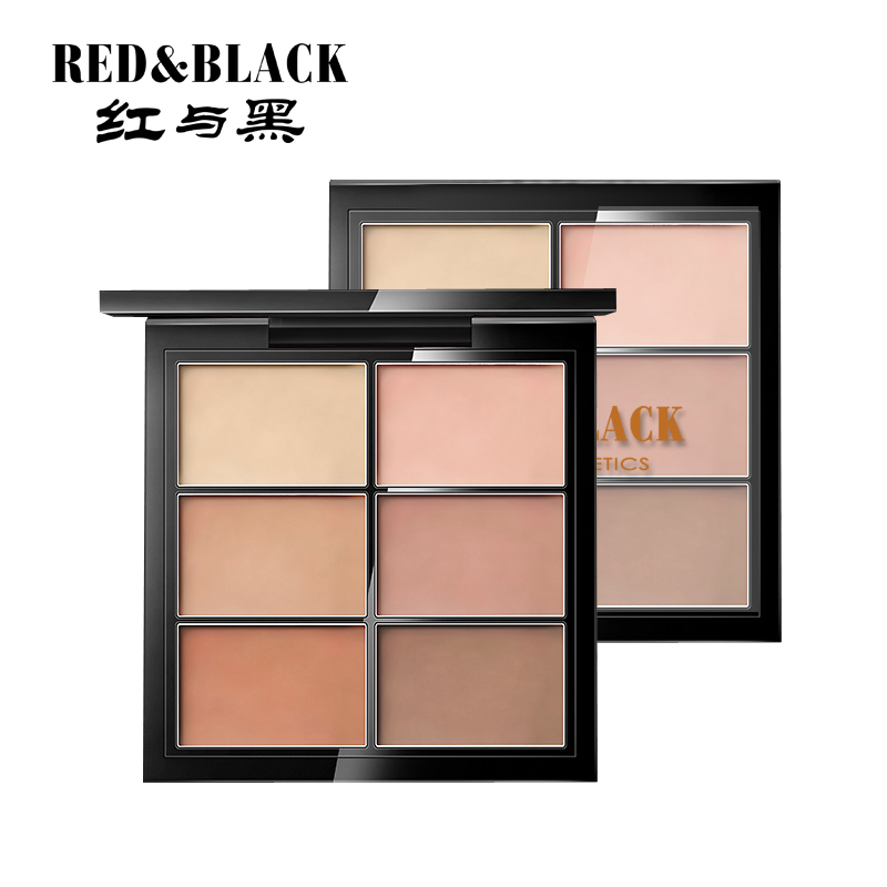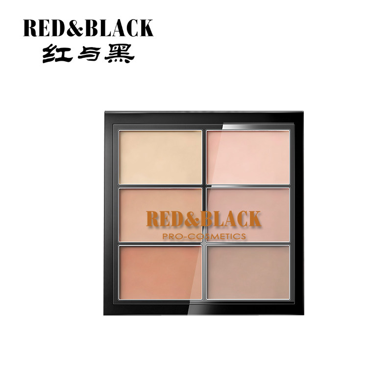 Red and Black Makeup Six-Color Concealer Palette Covers Dark Circles, Acne, Freckles, Highlights, Shadows, Moisturizing Repair Cream