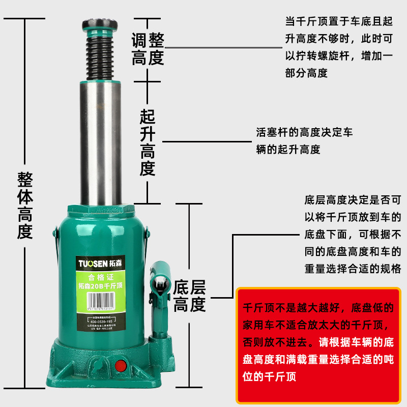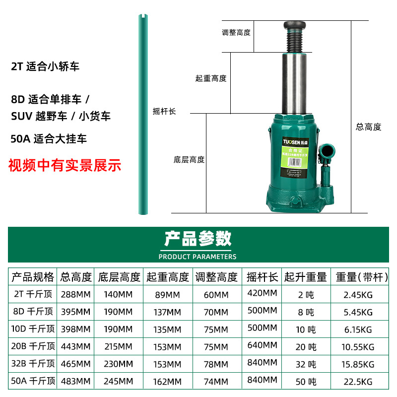 Jack small petrol car 2 ton vertical hydraulic 10 ton wagon car Off-road Caravan with hand shake giggim top pressure lever