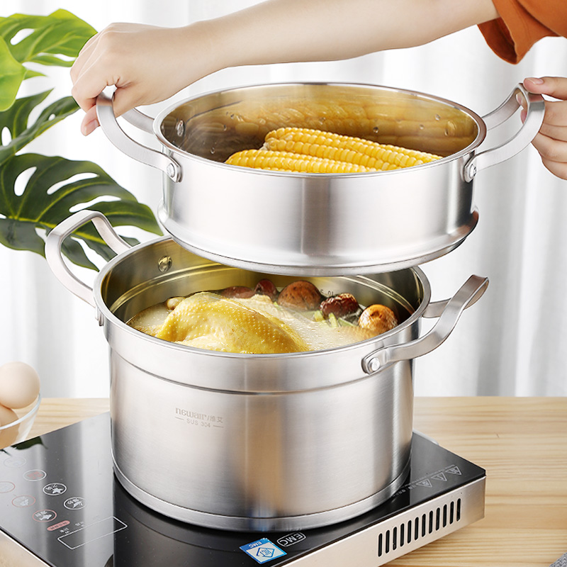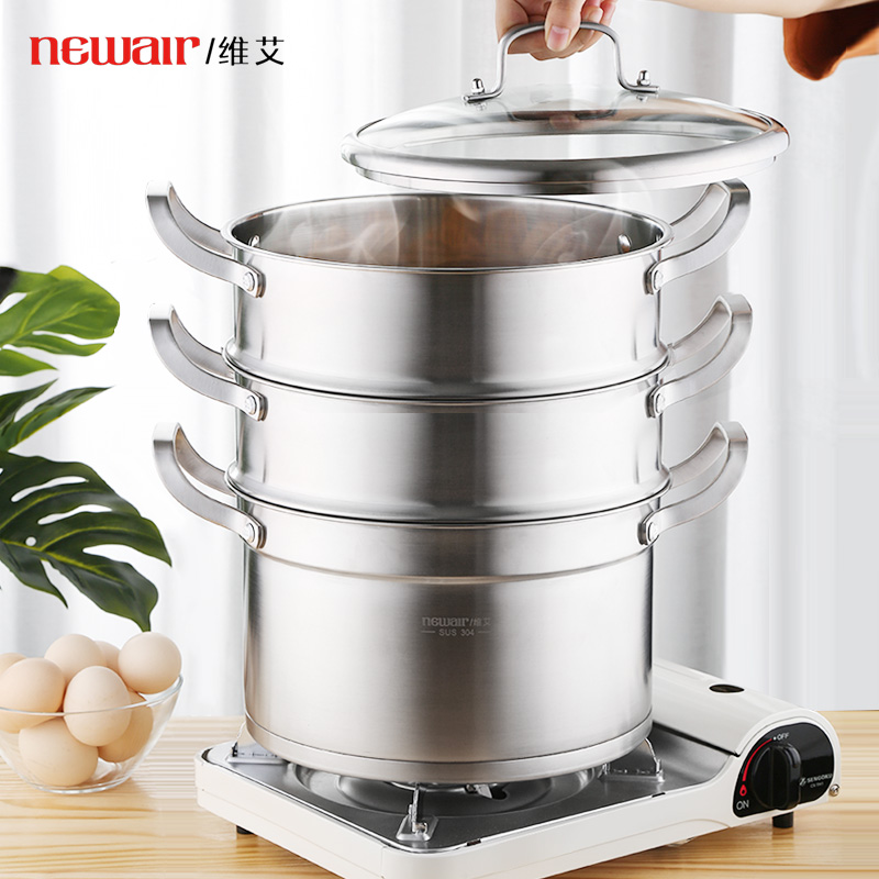 Steamer home 304 stainless steel thickened large capacity steamer drawer steamed bun three-layer double-layer induction cooker gas stove