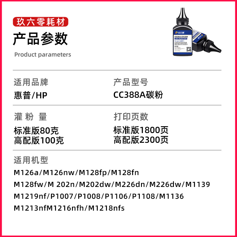 Suitable for HP printer toner Universal m1136 m1005mfp laser toner 1020 m126a p1106 1108 p1007 388