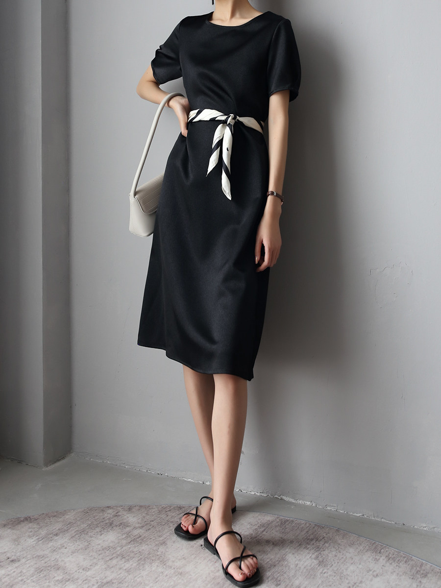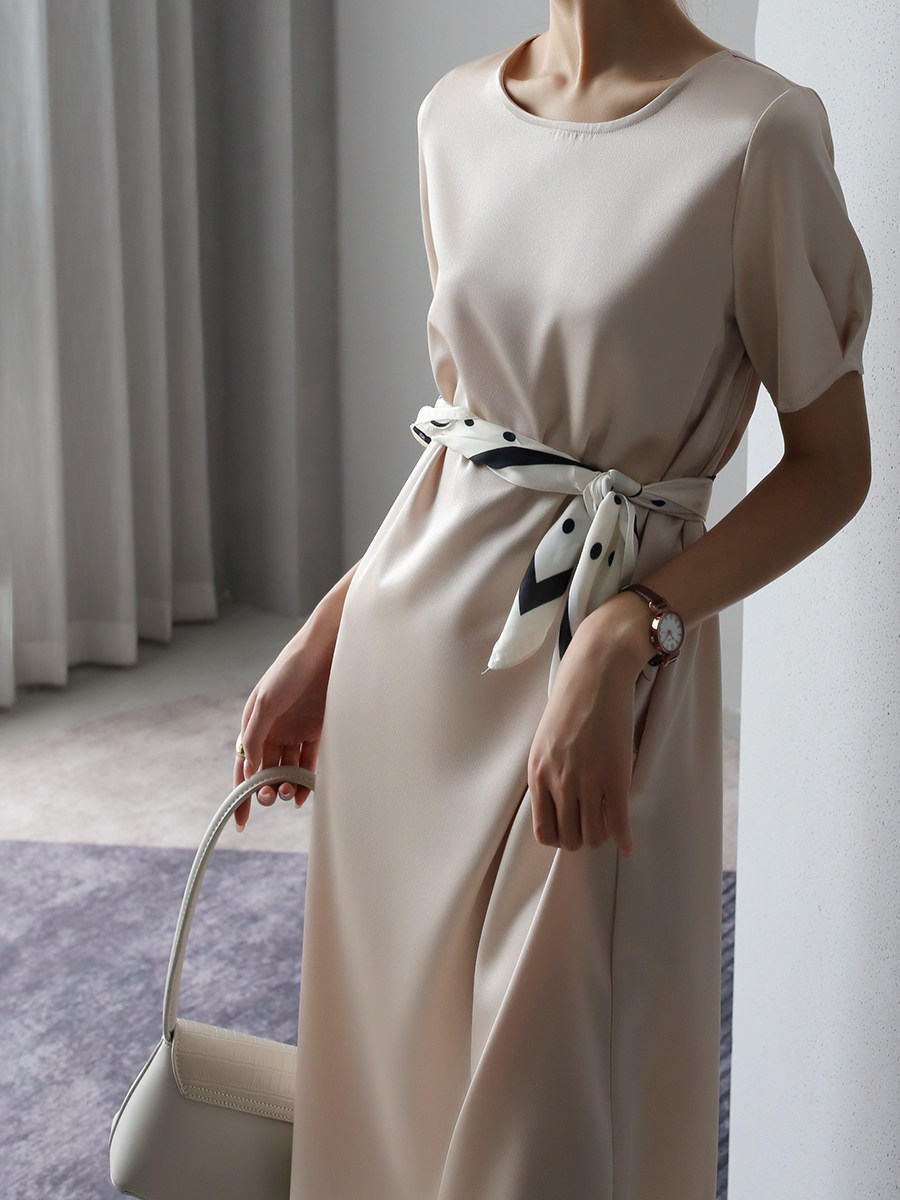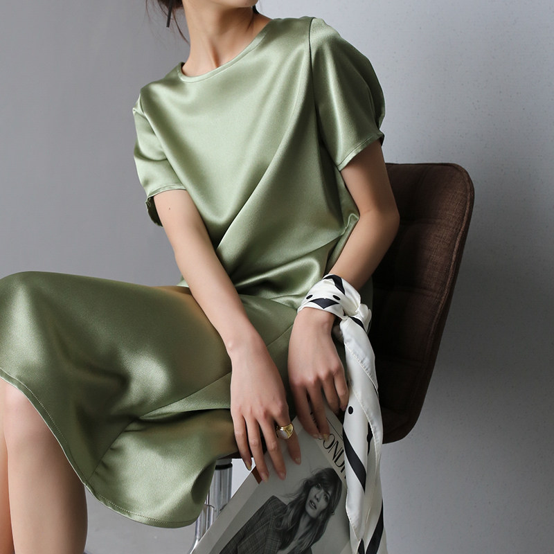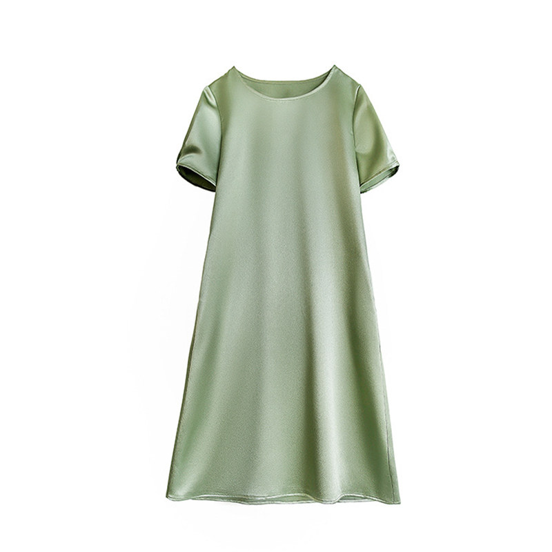 Warmo 2020 summer short-sleeved glossy acetate texture loose mid-length dress small girls look thin