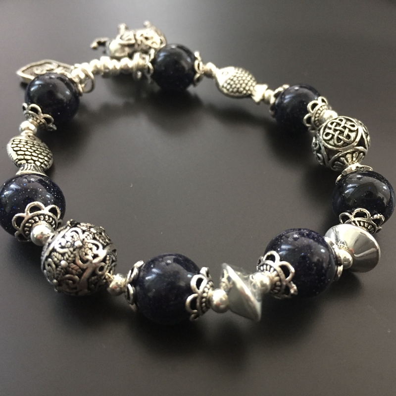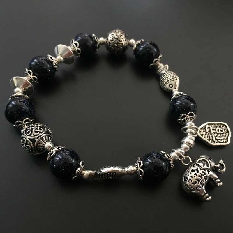 Lucky Elephant Sterling Silver Carved Blue Sandstone Transfer Bracelet Hand Woven Fashion Accessory DD16