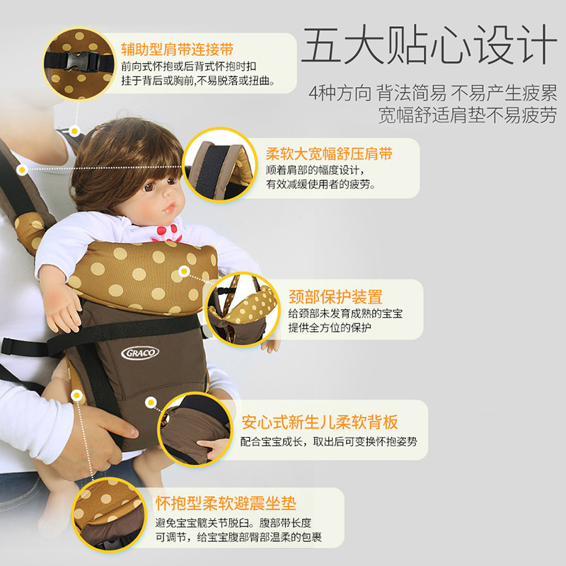 US GRACO multi-function baby back bag dual-use rear front hold type lightweight out of the simple four seasons breathable baby bag